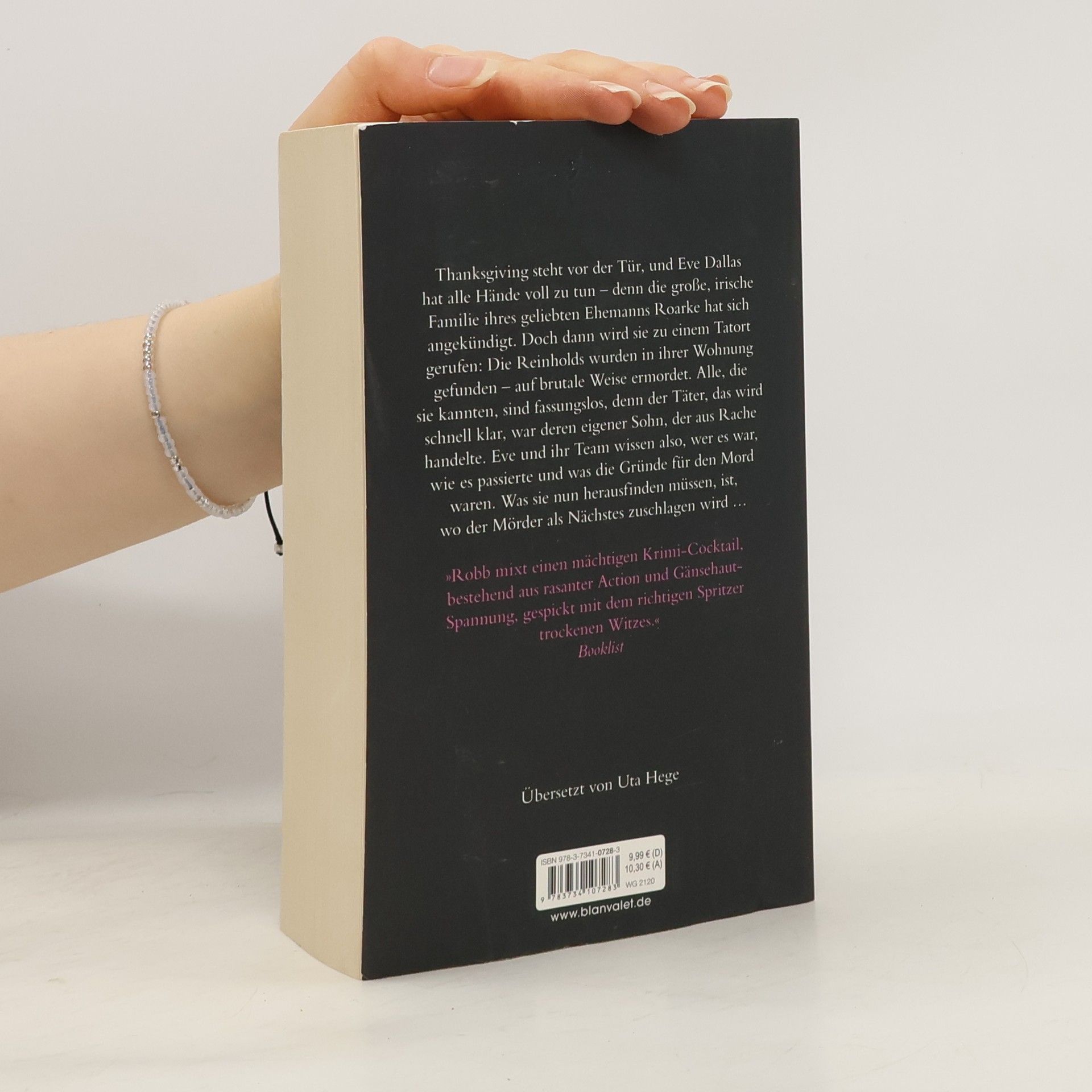 Sie kennen den Täter, die Methode, sein Motiv – doch nicht sein nächstes Opfer ... Thanksgiving steht vor der Tür, und Eve Dallas vom New-York-Police-Department hat alle Hände voll zu tun – denn die große, irische Familie ihres geliebten Ehemanns Roarke hat sich angekündigt. Doch dann wird sie zu einem Tatort gerufen: Die Reinholds wurden in ihrer Wohnung gefunden – auf brutale Weise ermordet. Alle, die sie kannten, sind fassungslos, denn der Täter, das wird schnell klar, war deren eigener Sohn, der aus Rache handelte. Eve und ihr Team wissen also, wer es war, wie es passierte und was die Gründe für den Mord waren. Was sie nun herausfinden müssen, ist, wo der Mörder als Nächstes zuschlagen wird …