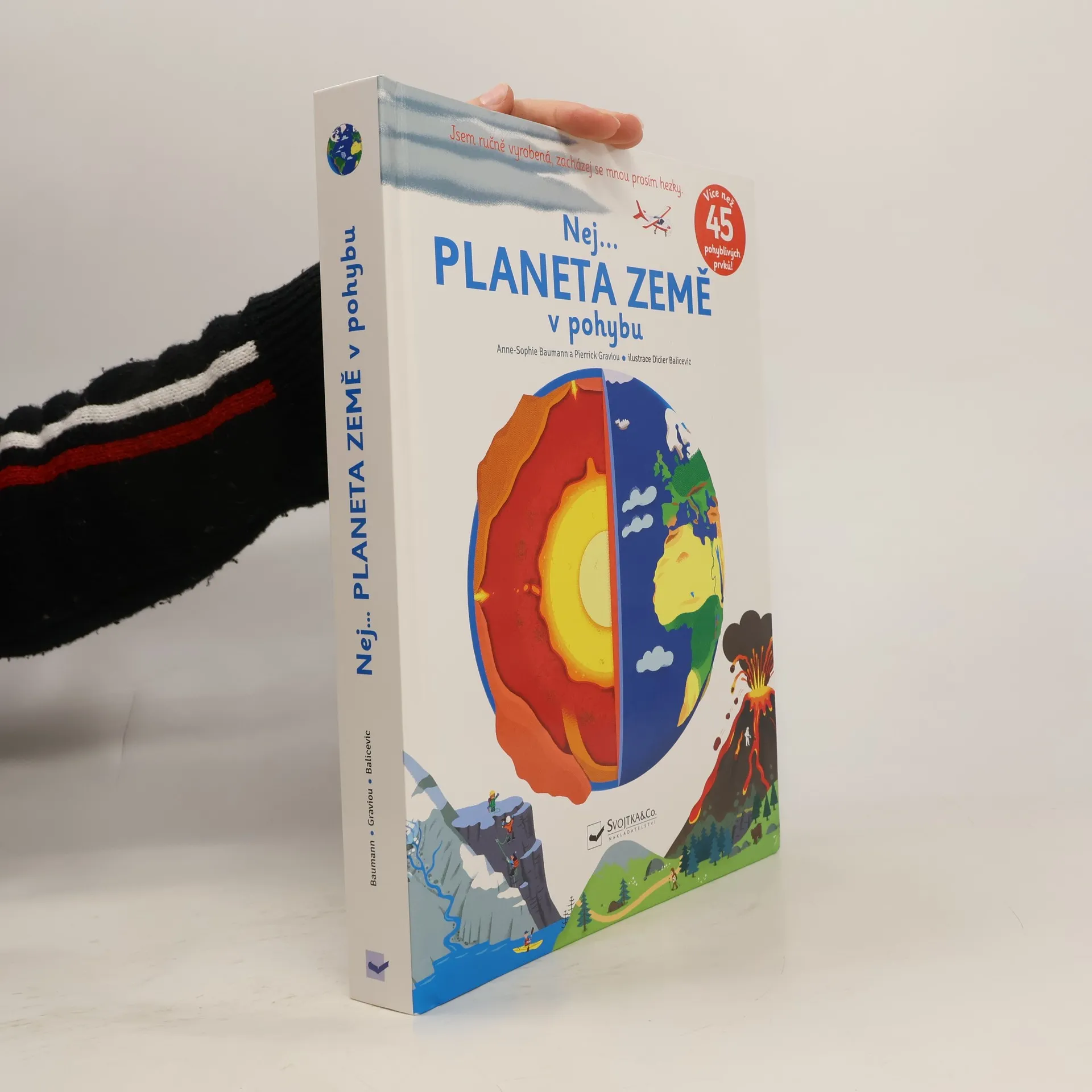 Prozkoumej úchvatné a velice propracované stránky, při jejichž otáčení se doslova tají dech. Vystoupej po obloze až do výšky 12 000 metrů, rozevři stránku a nech vzniknout pohoří, zjisti, jak se pohybovaly tektonické desky, nahlédni do samotného jádra planety. Podívej se, jak člověk mění krajinu a využívá její zdroje k získání potravy, energie a nerostného bohatství. Jak se žije v různých částech naší planety - odklop okénka a zjisti, jaké rozdíly panují v jednotlivých podnebích na Zemi. Tato kniha z řady Nej... obsahuje více než 45 pohyblivých částí pro názorný zážitek z naší krásné planety, která nás nikdy nepřestane fascinovat a kterou je třeba chránit. Kniha je ručně vyrobená; aby pohyblivé prvky dlouho vydržely, vyžaduje jemnější zacházení.