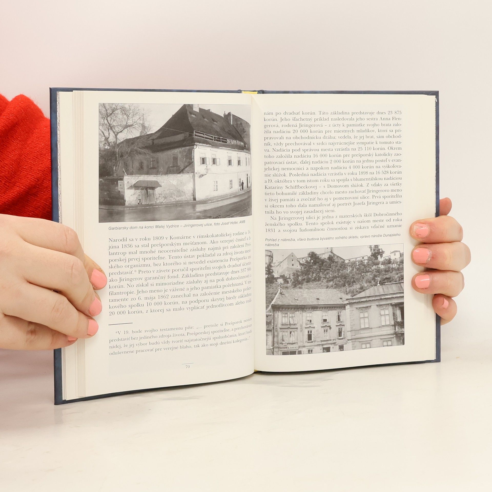 150 unikátnych fotografií, grafík a kresieb z dnes už neexistujúcej časti mesta, ktoré zachycujú jej neopakovateľnú atmosféru. Kniha je prechádzkou uličkami od starého židovského cintorína po nábreží Zuckermandlu a Vydrice, cez rybné námestie so siluetou dómu a synagógy, hore Židovskou a Zámockou ulicou okolo Hradu až po zostup z výšin Hradného vrchu cez spleť malebných uličiek späť na nábrežie.