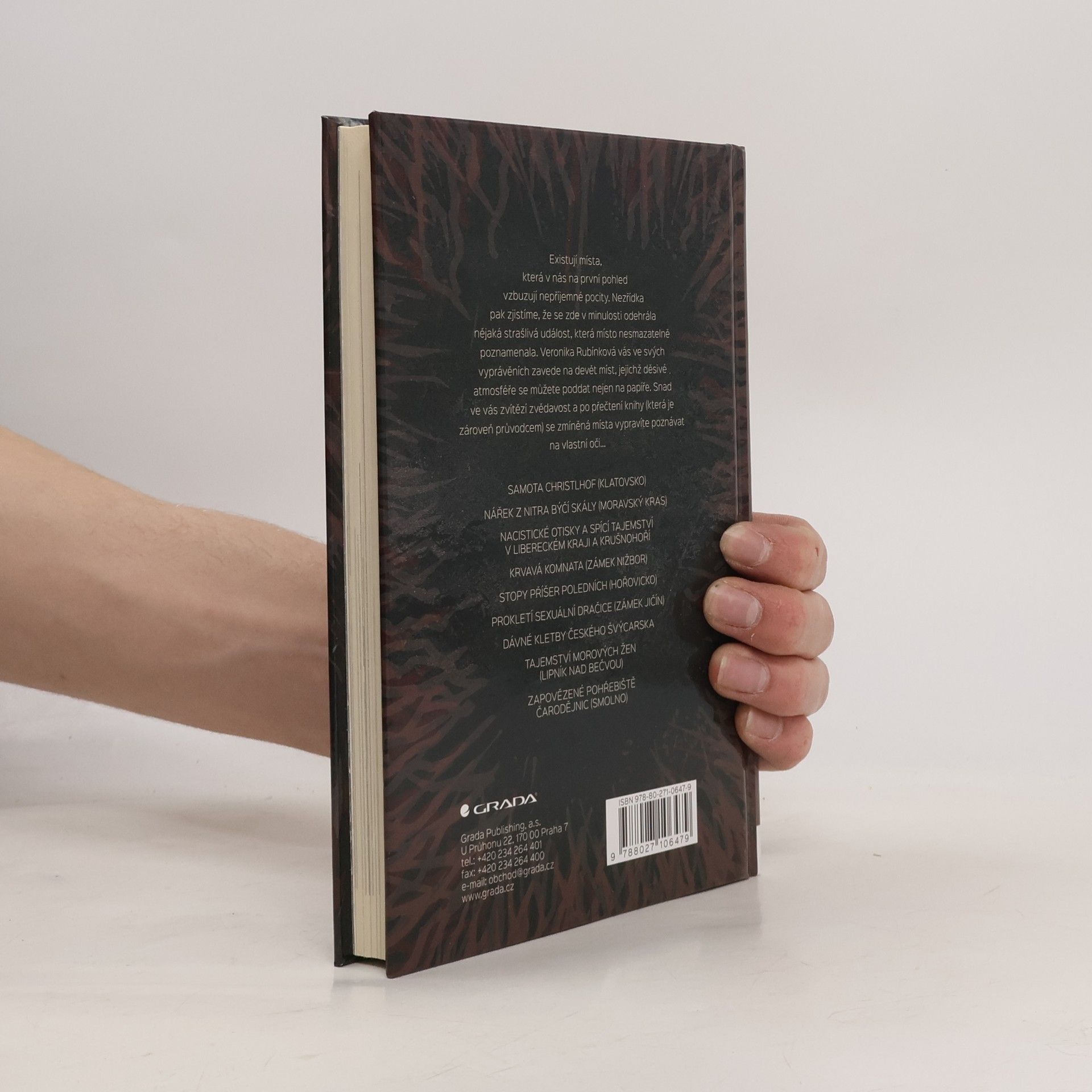Existují místa, která v nás na první pohled vzbuzují nepříjemné pocity. Nezřídka pak zjistíme, že se zde v minulosti odehrála nějaká strašlivá událost, která místo nesmazatelně poznamenala. Veronika Rubínková vás ve svých vyprávěních zavede na devět míst, jejichž děsivé atmosféře se můžete poddat nejen na papíře. Snad ve vás zvítězí zvědavost a po přečtení knihy (která je zároveň průvodcem) se je vypravíte poznávat na vlastní oči...