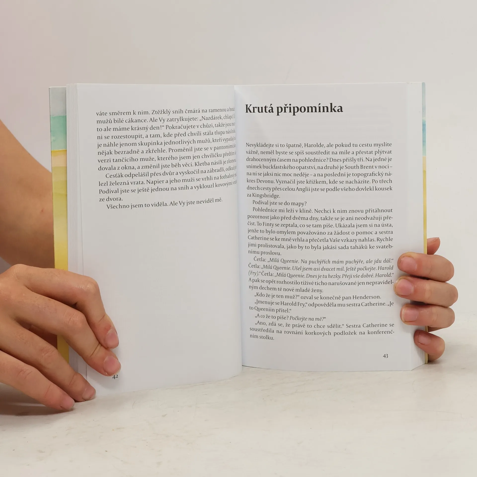 Velmi zvláštní román, který se jen částečně odehrává v hospici. Hlavní hrdinka, smrtelně nemocná, zavolá své dávné platonické lásce. A muž se, celkem bez jasného důvodu a poněkud nepochopitelně, vydá pěšky přes půl Anglie, aby dávnou známou ještě viděl. Svébytná beletrie z hospice o věrné lásce, která se nakonec naplní úplně jinak, než jak se tomu běžně rozumí. Pozadí příběhu dokresluje hospic: řeholní sestry a ostatní jeho obyvatelé, jejich besedy, přátelské mudrování i jejich odcházení. Kniha se zalíbí těm, kteří mají rádi neprvoplánové příběhy o lásce a tajemství.