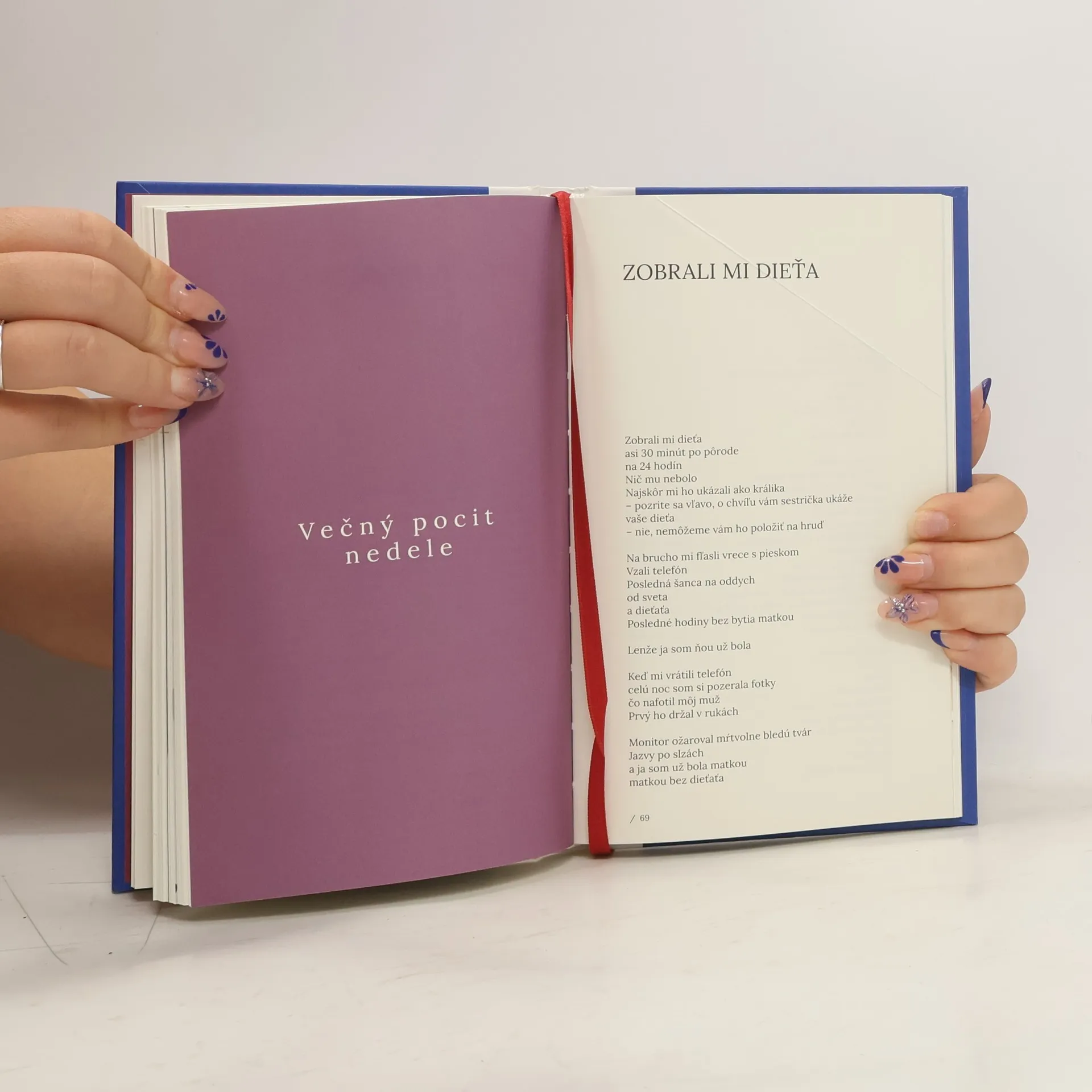 Básne vznikali najmä počas prípravy na materstvo a prvých mesiacov po narodení autorkinho syna, čo sa odzrkadľuje aj v jej poézii. Zbierka bude členená na tri časti: prvá - časť o (ne)plodnosti a smrti, druhá - tehotenstvo v týždňoch, tri - večný pocit nedele počas materskej.