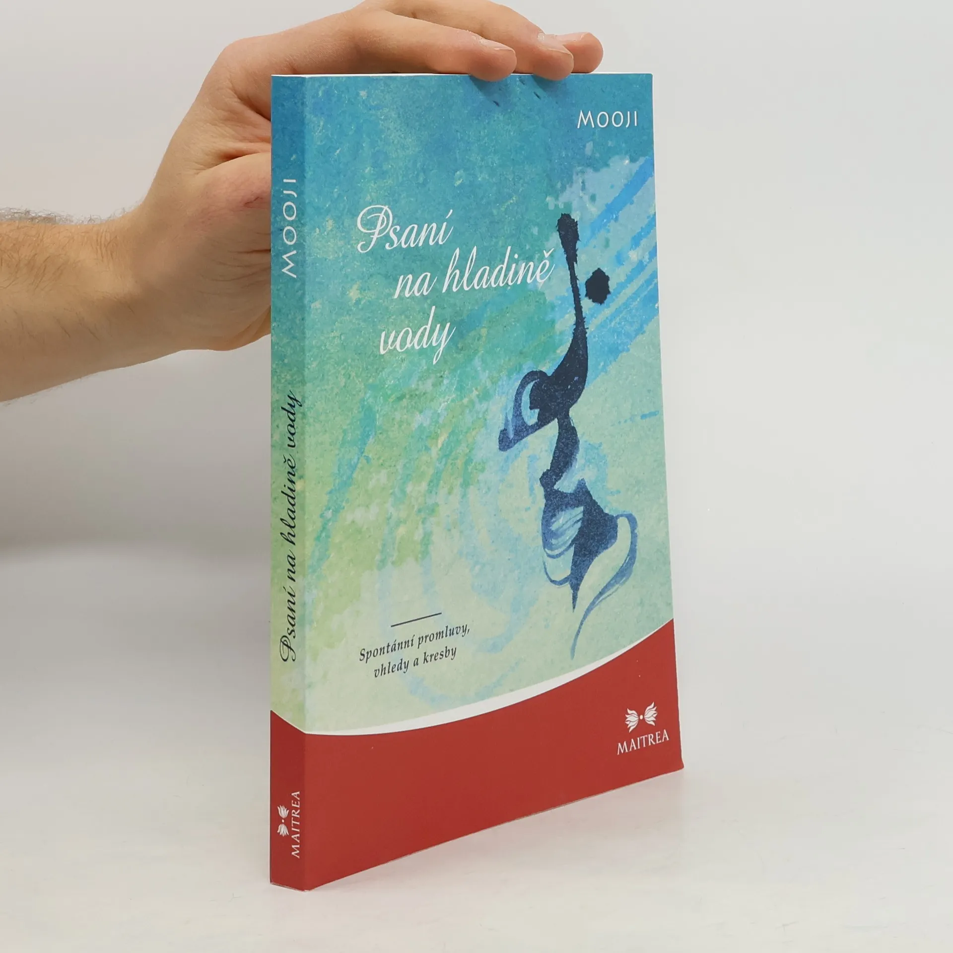 Psaní na hladině vody je zhuštěným paprskem té vroucí záře, kterou je Mooji. Uvnitř jsou obsaženy zlaté valouny moudrosti, jež byly nashromážděny za poslední desetiletí z Moojiho zápisníků a z jeho osobních setkání a satsangů po celém světě. Tato kniha je také pokladem díky obsaženým originálním kresbám, jež podporují psaná slova Pravdy. V Moojiho kresbách štětcem není žádný úmysl zachytit jakékoliv poznatelné objekty. Je to gejzír kreativní radosti. Jeho kresby vyjadřují spontaneitu a svobodu, jež souzní se životem. Je to víra v interpretace mysli, jež jsou příčinou našeho odbočení od zřejmé pravdy. Jeden způsob, jak se dostat z této pasti, je meditovat nad tím, co zde s námi Mooji sdílí a k čemu neochvějně poukazuje.