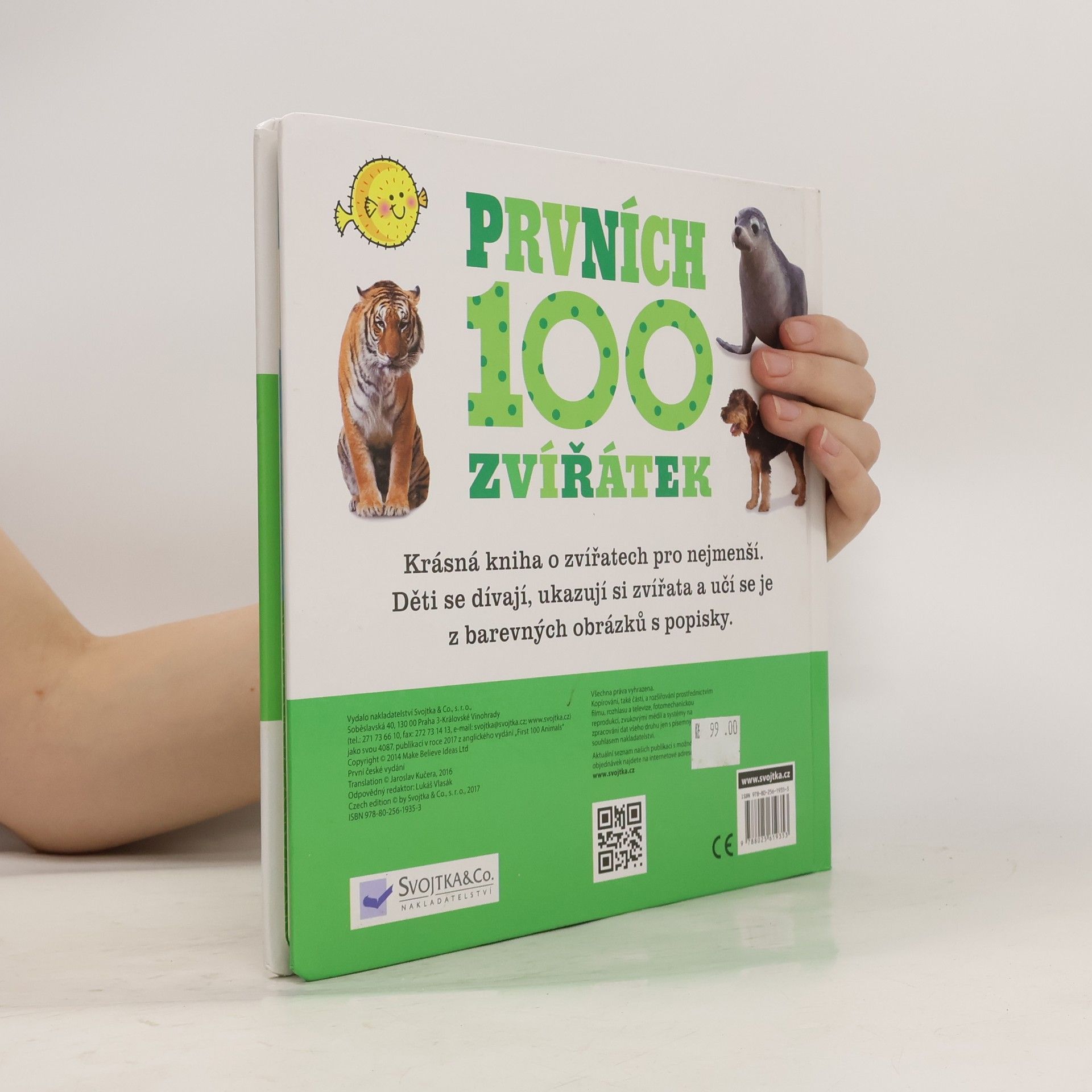 Tato krásná kniha o zvířatech je určena úplně těm nejmenším dětem, které právě poznávají svět kolem sebe a učí se ho správně pojmenovávat. Děti se s rodiči mohou dívat, ukazovat si na zvířata na obrázcích či fotografiích a učit se jejich jména. Pestrobarevná vyobrazení nejrůznějších zvířat – od domácích, přes mazlíčky, až po divoká zvířata a mořské tvory – jsou opatřena přehlednými popisky. Kvalitní pevné provedení obálky a stránek zaručuje knize dlouhou životnost, takže ji ani "náruživí" dětští čtenáři nemohou poškodit.