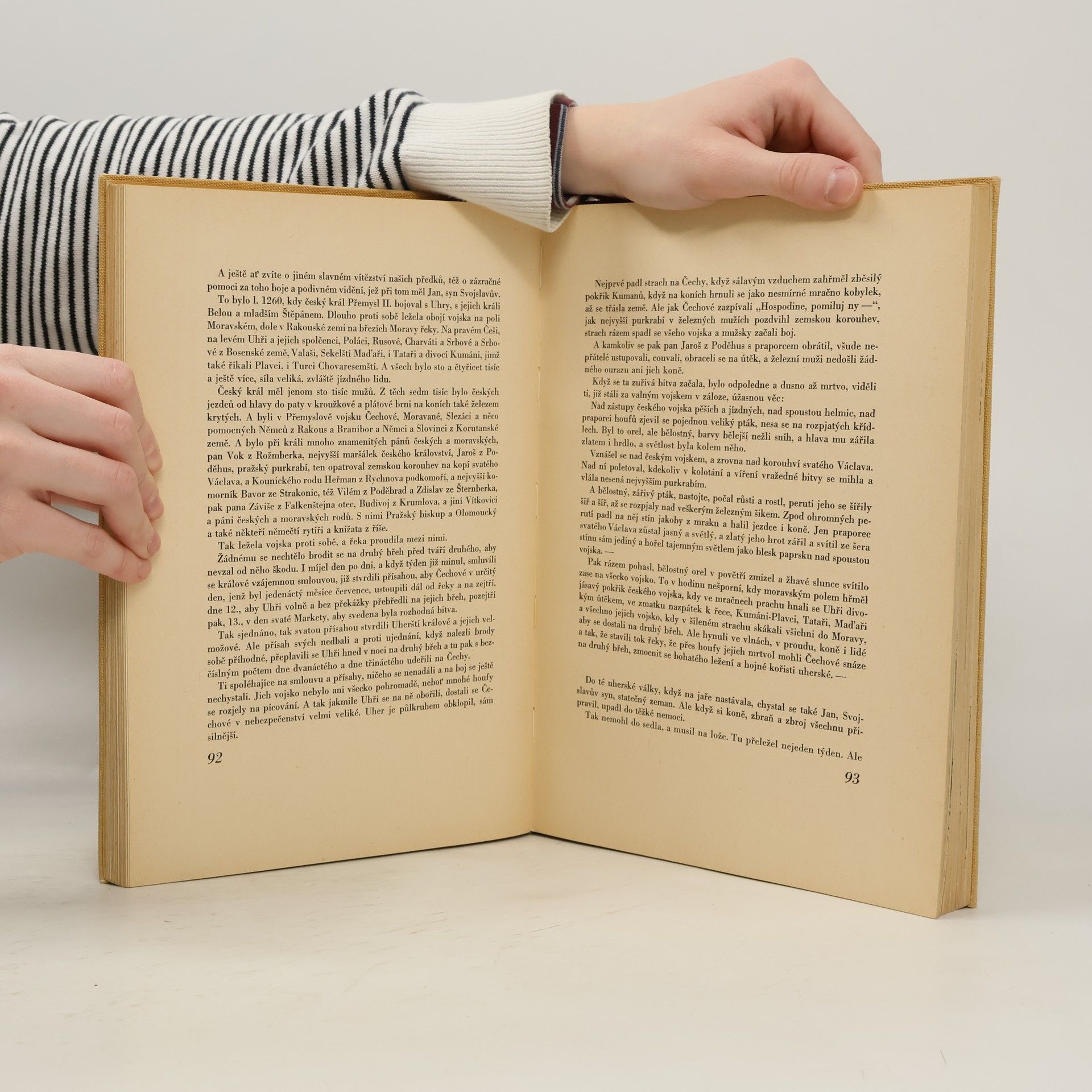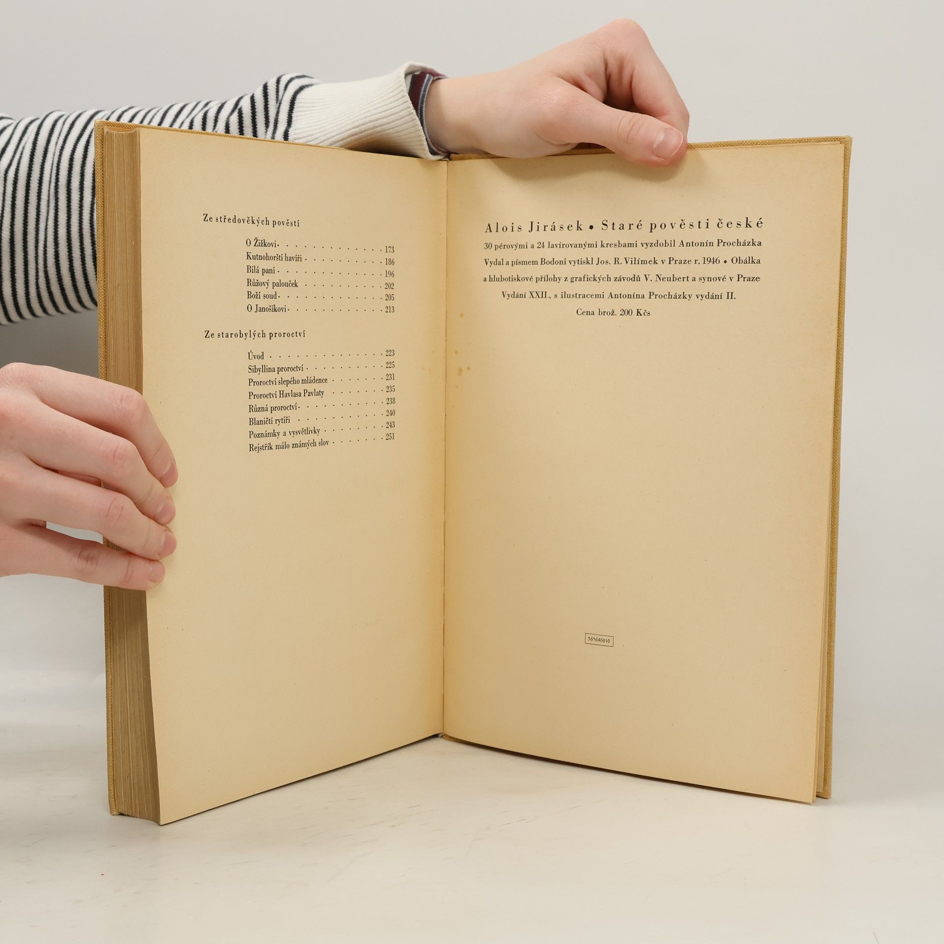 Poslyšte o našem praotci, o předcích, jak přišli do končin naší vlasti a usadili se po Labi a po Vltavě i po jiných řekách této země. Slyšte i, co více dochovalo se z temnoty věků, co zůstalo z báječných vypravování přešlých pokolení, jež klaněla se bohům v šeru starých hájů a jež obětovala studánkám v tichých ouvalech, jezerům i řekám i svatému, živému ohni ... Pojďte a poslyšte pověsti dávných časů...
