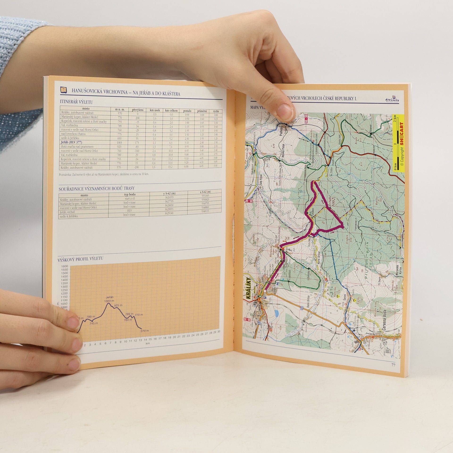 Kniha nabízí turistům náměty turistických tras zdolávajících vždy mimo jiné i nejvyšší vrcholy všech našich šestnácti tisícimetrových pohoří, přičemž vlastní podrobný popis každého výletu je doplněn turistickou mapou od společnosti SHOCart v měřítku 1:50000 s vyznačením trasy, detailním itinerářem výletu, graficky znázorněným reliéfem trasy, přehledem GPS souřadnic významných bodů trasy a řadou dalších užitečných informací. Součástí knihy je i souhrnný rejstřík všech tisícimetrových vrcholů České republiky. Publikace je doplněna více než stočtyřiceti barevnými fotografiemi.