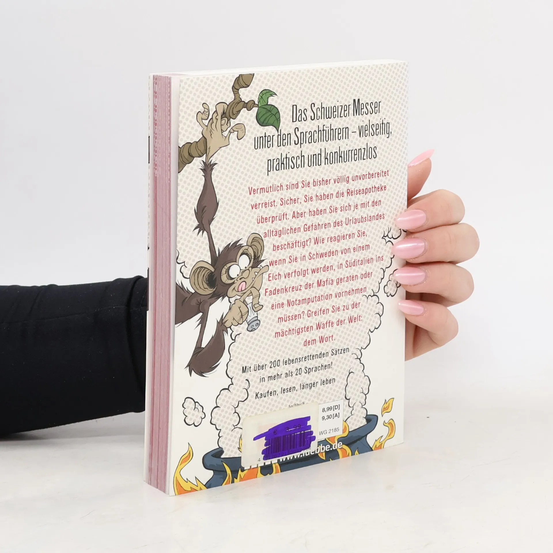 Vermutlich sind Sie bisher völlig unvorbereitet verreist. Sicher, Sie haben die Reiseapotheke überprüft. Aber haben Sie sich je mit den alltäglichen Gefahren des Urlaubslandes beschäftigt? Wie reagieren Sie, wenn Sie in Schweden von einem Elch verfolgt werden, in Süditalien ins Fadenkreuz der Mafia geraten oder eine Notamputation vornehmen müssen? Greifen Sie zu der mächtigsten Waffe der Welt: dem Wort. Mit über 200 lebensrettenden Sätzen in mehr als 20 Sprachen! Kaufen, lesen, länger leben!