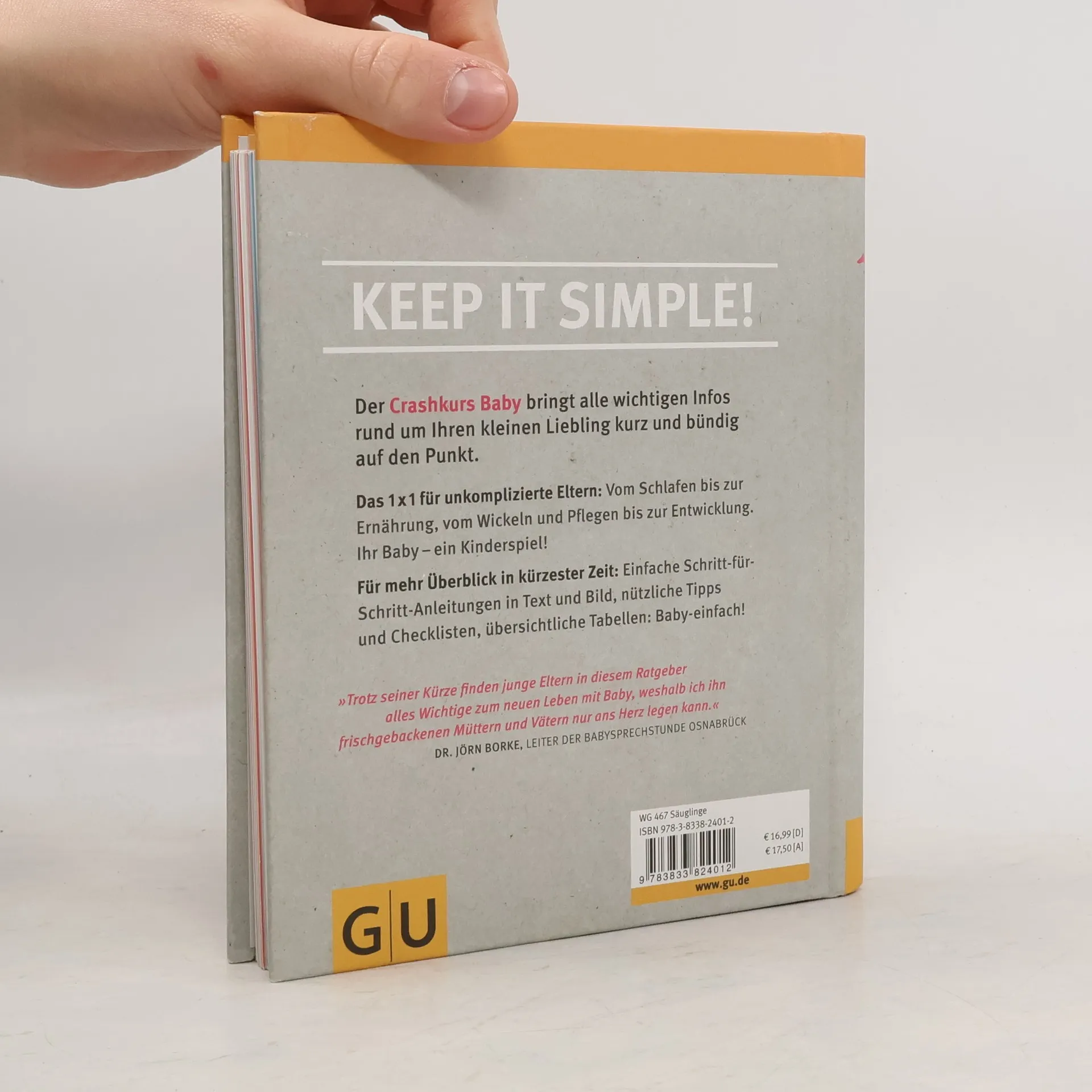 Der Crashkurs Baby zeigt allen unkomplizierten, frisch gebackenen Eltern, was sie im Leben mit dem Säugling wissen müssen. Kurz und bündig werden sie über Praktisches und Nützliches, über Babypflege und Kindergesundheit, über Entwicklung und Förderung informiert. Zum Beispiel: Wie bekomme ich mein Baby zum Schlafen? Wie lege ich es zum Stillen an? Was ist bei Fläschchenernährung wichtig? Wie lässt sich das Kleine beruhigen? Was sind die Basics in Sachen Babyentwicklung? Ein Ratgeber, der die wichtigen Infos ohne Umschweife auf den Punkt bringt - mit prägnanten Anleitungen, hilfreichen Illustrationen und Checklisten.