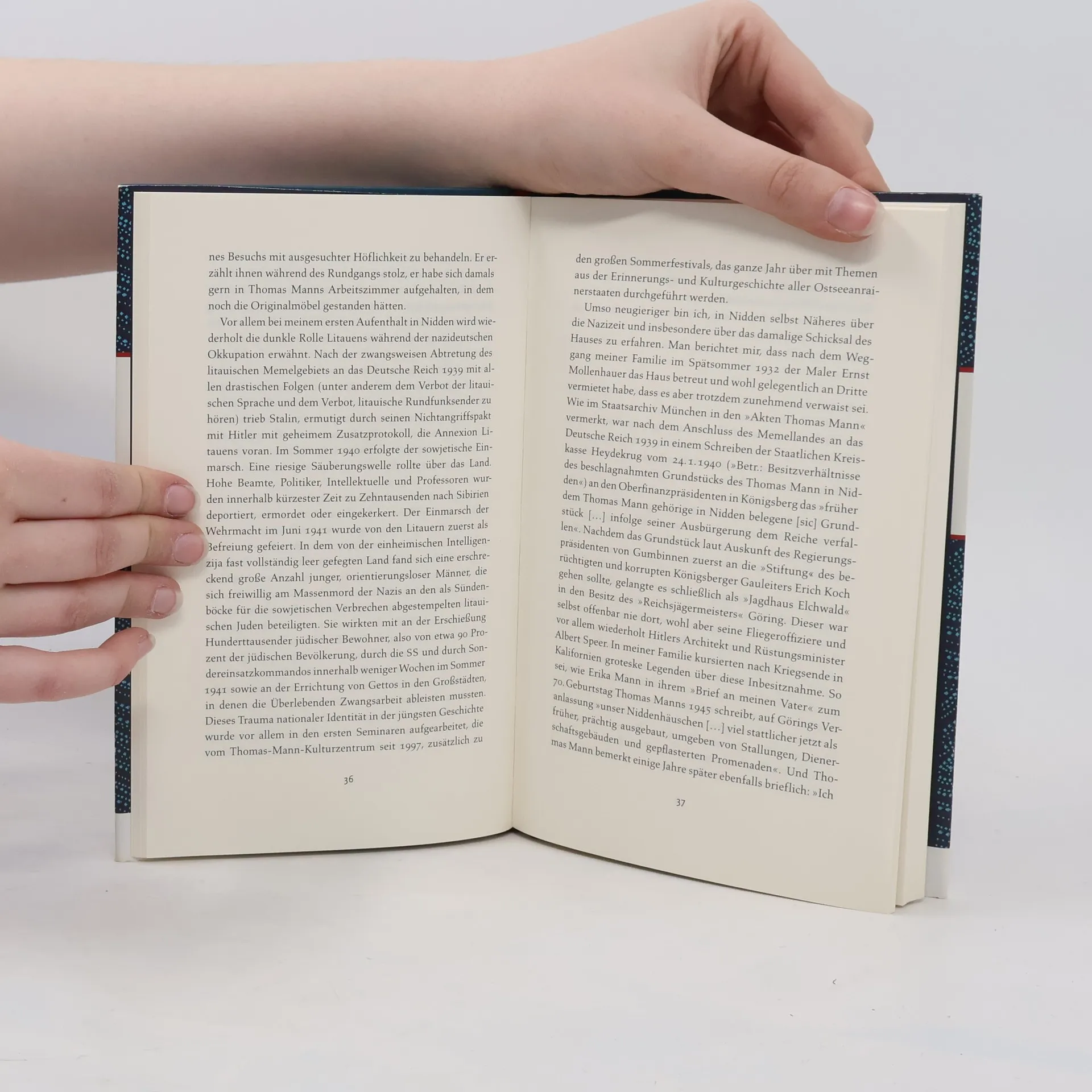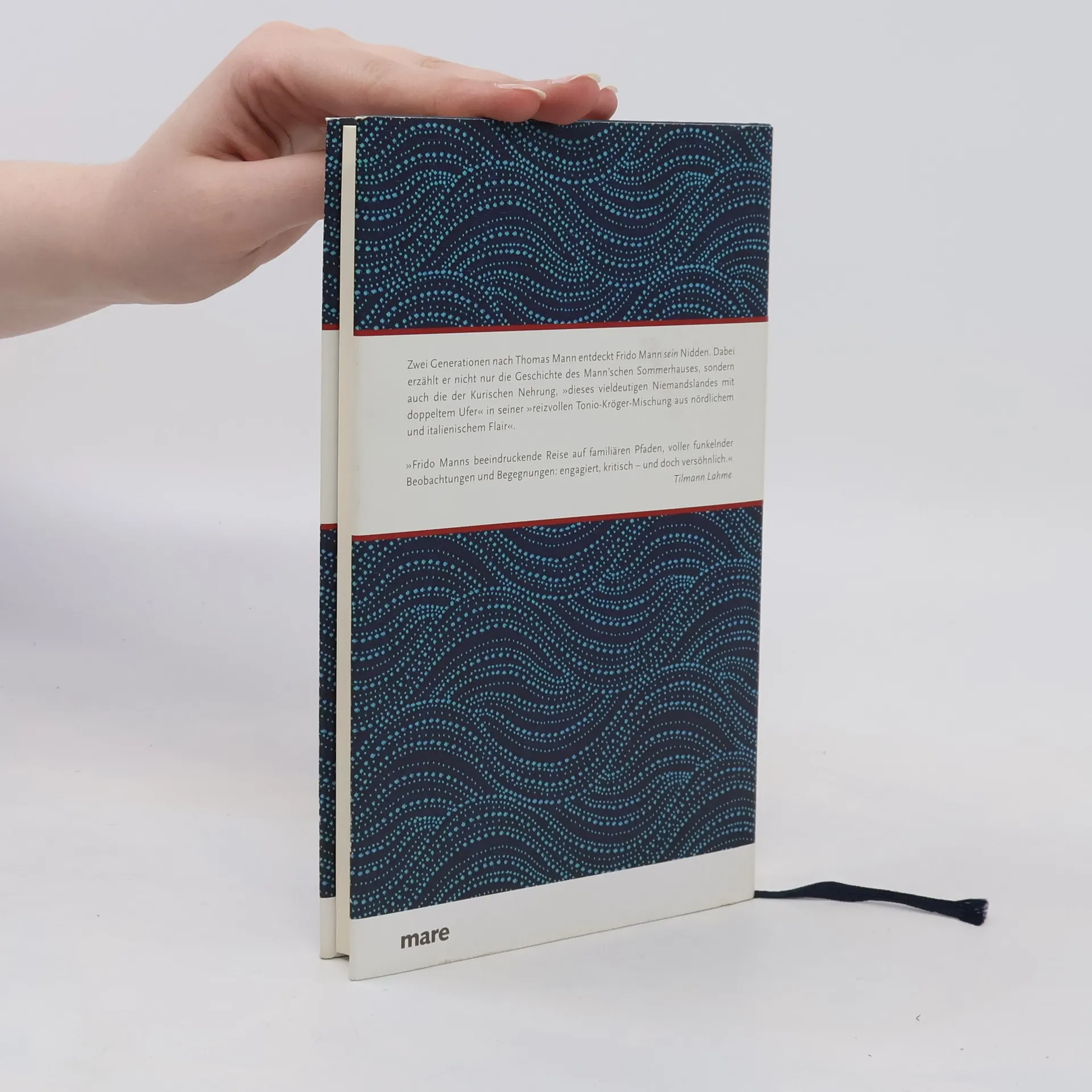 'Wie auf einem Schiff' fühlte sich Thomas Mann in seinem Niddener Ferienhaus. Und in der Tat können die drei Sommer 1930–1932, welche die Manns im Fischerdorf Nidden auf der Kurischen Nehrung verlebten, einer schmalen Halbinsel zwischen Ostsee und Kurischem Haff, als eine Art Vor-Exil gelten, bevor die Familie über den Ozean nach Amerika emigrierte. Zwei Generationen später entdeckt nun Frido Mann, der Enkel Thomas Manns, bei zahlreichen Besuchen sein Nidden: Dabei wandelt er nicht nur auf den Spuren seiner Vorfahren, sondern zeichnet auch die wechselvolle Geschichte der Kurischen Nehrung im 20. Jahrhundert nach – hin- und hergerissen zwischen Deutschem Reich, Sowjetherrschaft und der Unabhängigkeit Litauens. Mit Neugier, Empathie und Weitblick wirkt Frido Mann an der Zukunft des Niddener Hauses als eines Zentrums für interkulturellen Austausch mit. Nicht zuletzt entwirft er in seinem Buch ein eindrucksvolles Bild der überwältigenden Natur mit ihrer Mischung aus nördlichem und südlichem Charme und einem Himmel, der sich in fast endlosen Blautönen über dem Haff und der 'europäischen Sahara' – dem berühmten Wanderdünenfeld – erstreckt.