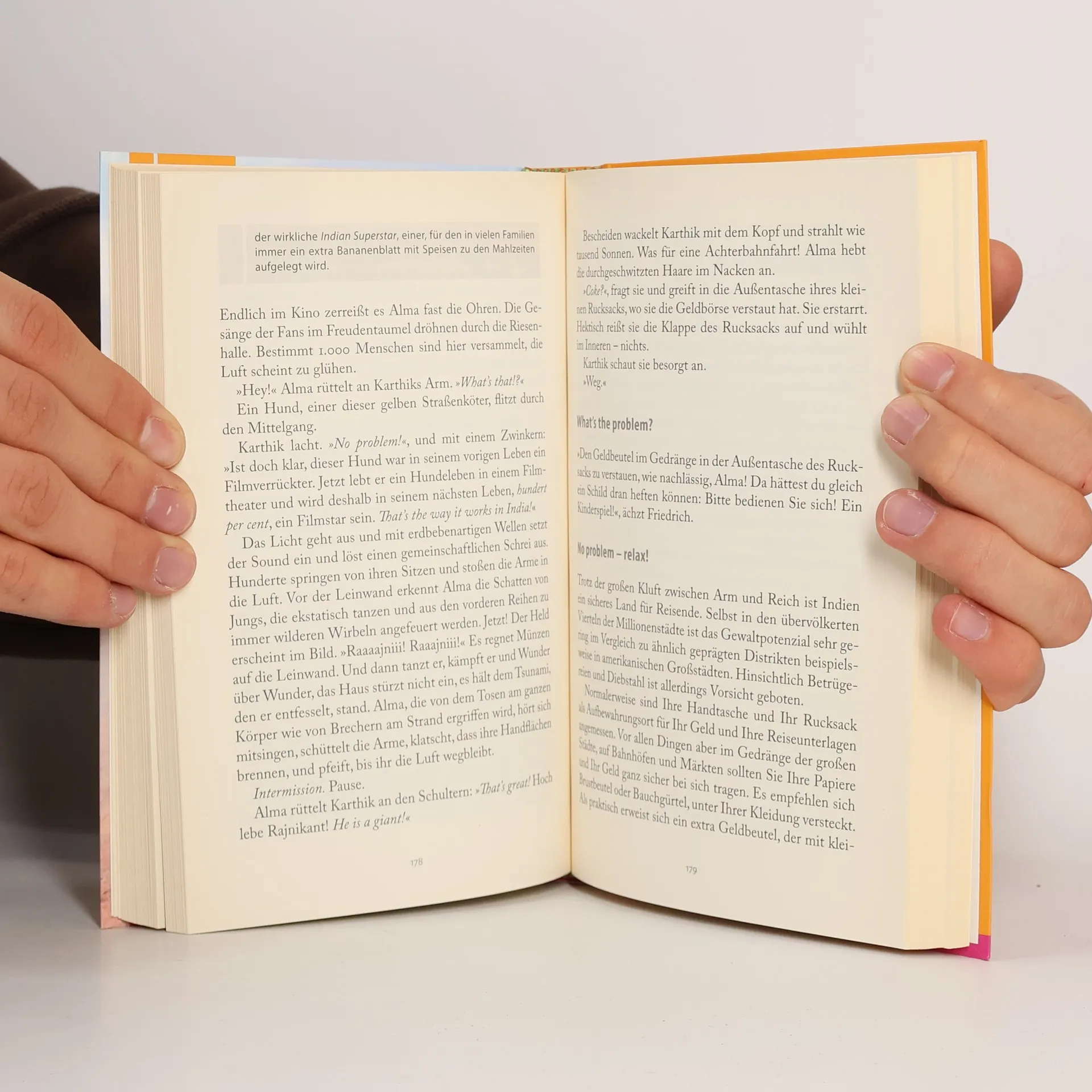 Namaste! Willkommen in den Untiefen der indischen Kultur, zwischen Mantras und Mumbai, Curry und Chaos, Bollywood und Buddha. Lebenskünstlerin Alma, durch und durch Berliner Schnauze, begegnet Indien auf ihrem Trip vom Norden bis tief in den Süden mit Abenteuerlust und Ungeduld. Doch Mother India hält völlig gelassen dagegen. Beharrlich torpediert der indische Alltag Almas deutschen Ordnungssinn mit irrwitziger und zur Weißglut treibender sogenannter Normalität, mit Lärm und Monströsem. Und schon bald wird sonnenklar: Das Einzige, was Alma wirklich von Indien erwarten kann, ist das Unerwartete.   Doch wie heißt es so schön im Land der Yogis: no problem! Und auch wenn sich hinter jedem no problem garantiert eine bunte Palette zahlloser Schwierigkeiten materialisiert, seien Sie unbesorgt: Indien kennt keine Probleme, nur Lösungen. Zugegeben, die entfalten sich möglicherweise erst im nächsten Leben, aber auch das ist nur eine Frage der Zeit, und davon gibt es in Indien schließlich mehr als genug. Be happy!