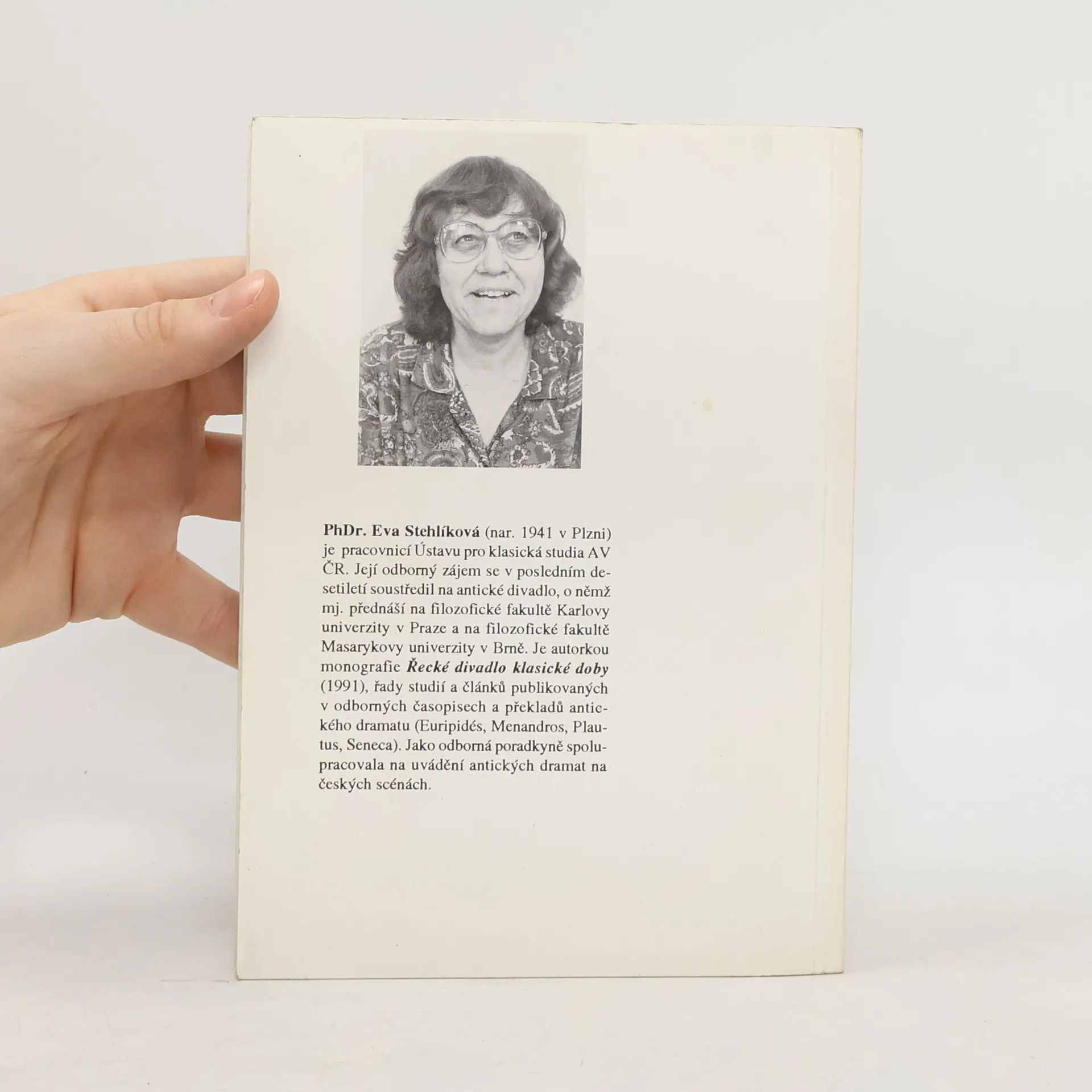 Po monografii Řecké divadlo klasické doby přiblížila prof Eva Stehlíková další a trochu opomíjenější etapu antického divadla v ucelené studii ve všech jeho formách. Tyto dvě čtivé publikace jsou klíčovými studijními materiály ke studiu o antickém divadle.