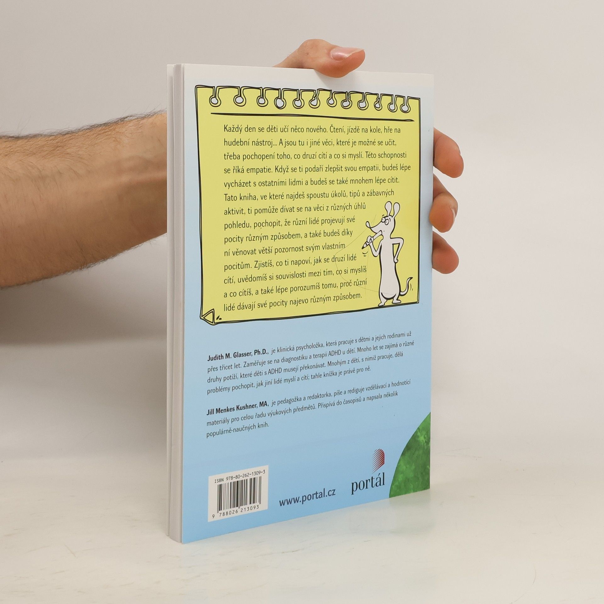 Každý den se děti učí něco nového. Čtení, jízdě na kole, hře na hudební nástroj… A jsou tu i jiné věci, které je možné se učit, třeba pochopení toho, co druzí cítí a co si myslí. Této schopnosti se říká empatie. Když se ti podaří zlepšit svou empatii, budeš lépe vycházet s ostatními lidmi a budeš se také mnohem lépe cítit. Tato kniha, ve které najdeš spoustu úkolů, tipů a zábavných aktivit, ti pomůže dívat se na věci z různých úhlů pohledu, pochopit, že různí lidé projevují své pocity různým způsobem, a také díky ní budeš věnovat větší pozornost svým vlastním pocitům. Zjistíš, co ti napoví, jak se druzí lidé cítí, uvědomíš si souvislosti mezi tím, co si myslíš a co cítíš, a také více porozumíš tomu, proč různí lidé dávají své pocity najevo různým způsobem.