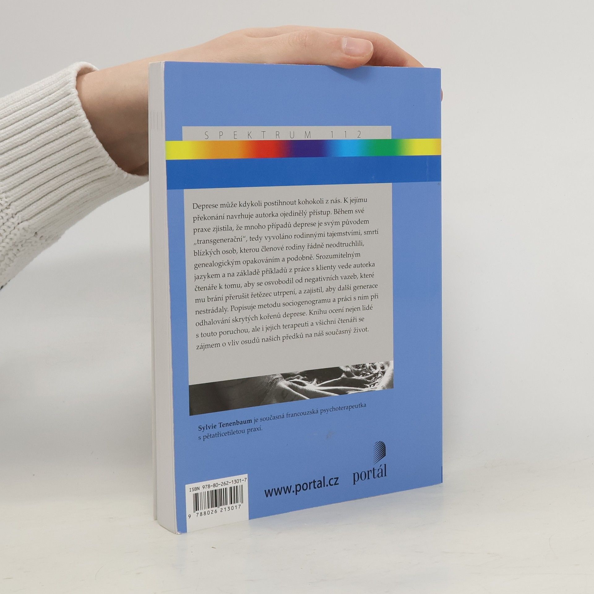 Deprese může kdykoli postihnout kohokoli z nás. K jejímu překonání navrhuje autorka ojedinělý přístup. Během své praxe zjistila, že mnoho případů deprese je svým původem „transgenerační“, tedy vyvoláno rodinnými tajemstvími, smrtí blízkých osob, kterou členové rodiny řádně neodtruchlili, genealogickým opakováním a tak podobně. Srozumitelným jazykem a na základě příkladů z práce s klienty vede autorka čtenáře k tomu, aby se osvobodil od negativních vazeb, které mu brání přerušit řetězec utrpení a zajistit, aby další generace nestrádaly. Popisuje metodu sociogenogramu a práci s ním při odhalování skrytých kořenů deprese. Knihu ocení nejen lidé s touto poruchou, ale i jejich terapeuti, a všichni čtenáři se zájmem o vliv životů našich předků na náš současný život.