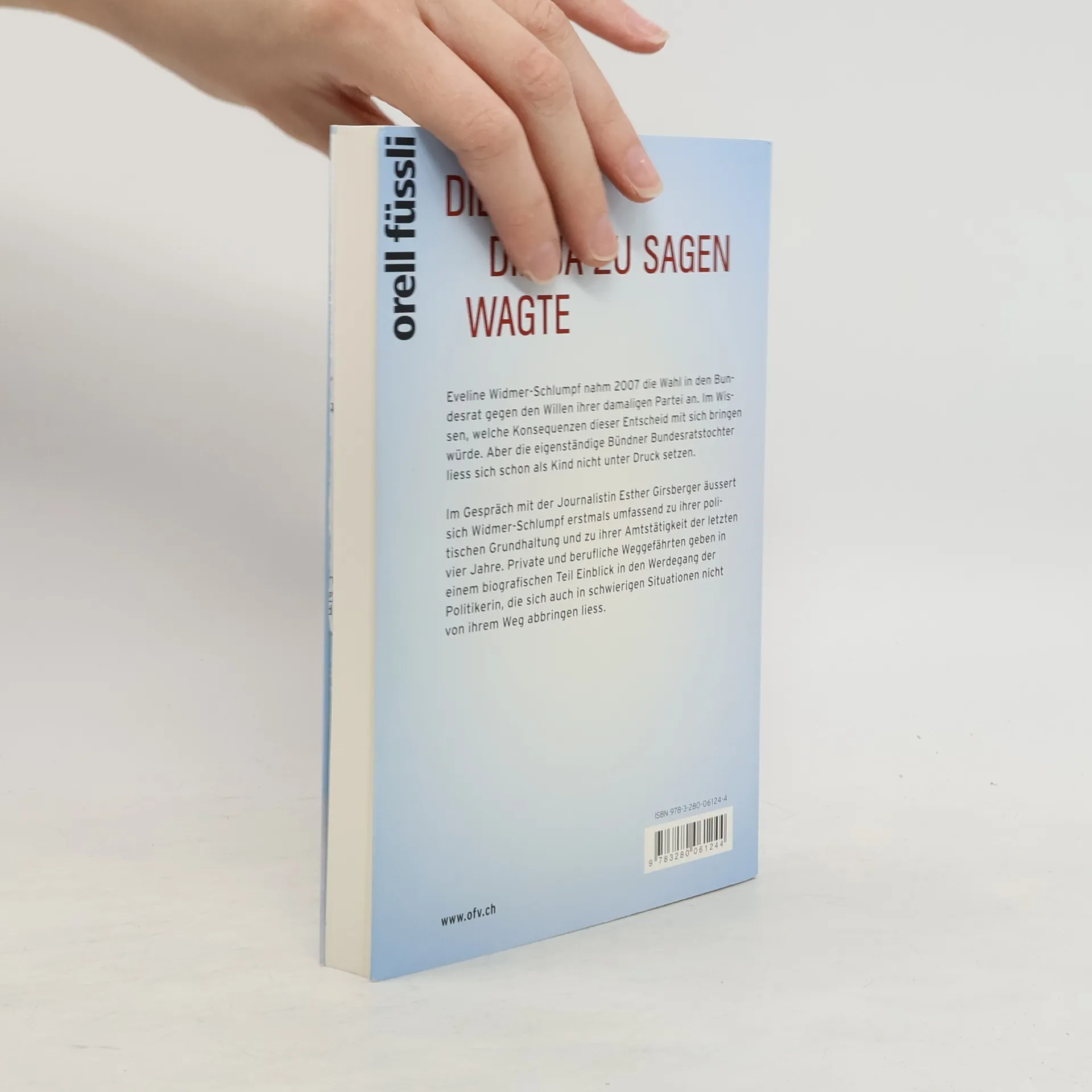 Eveline Widmer-Schlumpf nahm 2007 die Wahl in den Bundesrat gegen den Willen ihrer damaligen Partei an. Im Wissen, welche Konsequenzen dieser Entscheid mit sich bringen würde. Aber die eigenständige Bündner Bundesratstochter liess sich schon als Kind nicht unter Druck setzen. Im Gespräch mit der Journalistin Esther Girsberger äussert sich Widmer-Schlumpf erstmals umfassend zu ihrer politischen Grundhaltung und zu ihrer Amtstätigkeit der letzten vier Jahre. Private und berufliche Weggefährten geben in einem biografischen Teil Einblick in den Werdegang der Politikerin, die sich auch in schwierigen Situationen nicht von ihrem Weg abbringen liess.