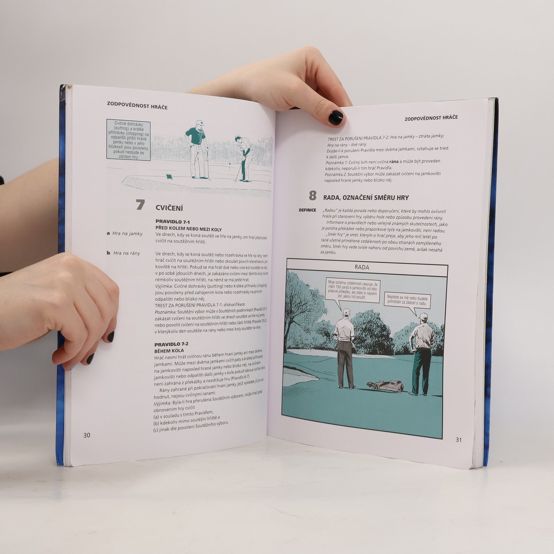 Golfová pravidla slovem i obrazem. Ilustrovaná pravidla golfu jsou jasnou a názornou učebnicí golfových pravidel včetně různých specifik. Ve své podstatě je kniha výčtem pravidel golfové hry a pro vybrané situace je připraven obrázek a komentář s podrobným vysvětlením problematiky golfového pravidla. Pro začátečníky nebo pokročilé hráče golfu? Kniha je určena v podstatě všem. Golfový začátečník díky názorné formě (ilustrace, vysvětlivky) pravidel golfové hry pochopí, co golf vlastně je, jak se hraje. Dozví se, co je golfová hra na jamky a rozdíl oproti hře na rány, nejde i podrobnosti o rozdílnosti golfových holí a další základní věci. Pokročilý hráč golfu naopak najde vysvětlení nebo upřesnění těch golfových pravidel, která v počátcích svého hraní golfu nepotřeboval nebo neznal. Vyplatí se koupit knihu Ilustrovaná pravidla golfu? Pravidla golfu by měl znát každý hráč této hry (pokud chce zelenou kartu tak je musí opravdu znát a tuto znalost pravidel také prokázat) a kniha Ilustrovaná pravidla golfu je asi "nejstravitelnější" příručkou. Kniha Vám umožní poměrně rychlé studovat a hlavně snadno pochopit podstatu golfu i zejména jednotlivých pravidel. Otřepaná věta "jeden obrázek znamená víc než tisíc slov" v případě Ilustrovaných pravidel golfu dokazuje svou pravdivost .