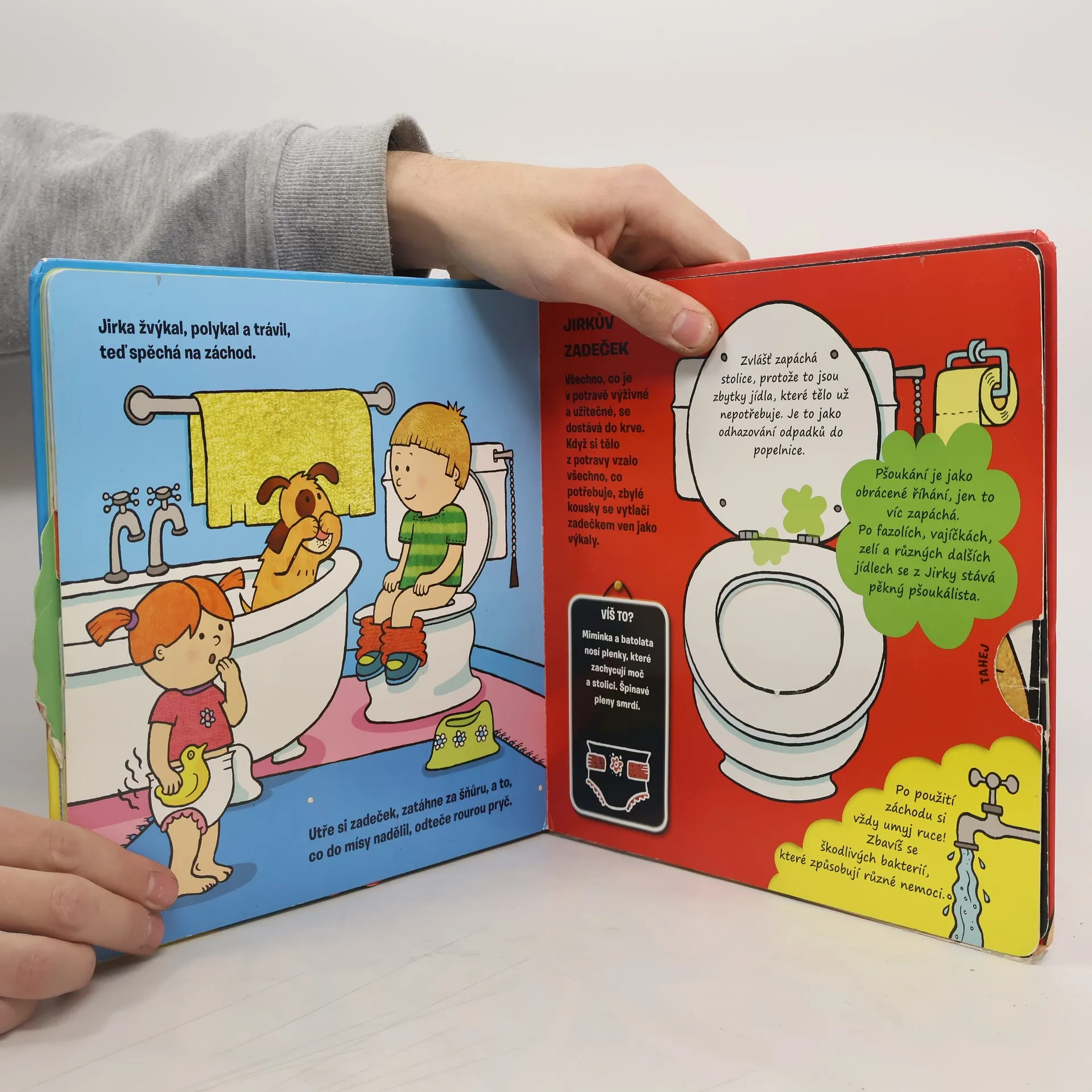 Tato interaktivní knížka se může stát prvním průvodcem lidským tělem. Stránku po stránce sleduje, co se děje po celý den uvnitř těla malého Jiříka. S prvními fakty o těle seznamuje děti zábavným a srozumitelným způsobem. Je totiž plná překvapení: odklápěcích záložek, otáčecích koleček a děti v ní najdou i skládací kostru! Co vlastně dělá mozek? A jak tělo zpracuje potravu? I na takové otázky tady děti najdou odpovědi. A ještě na mnoho dalších...