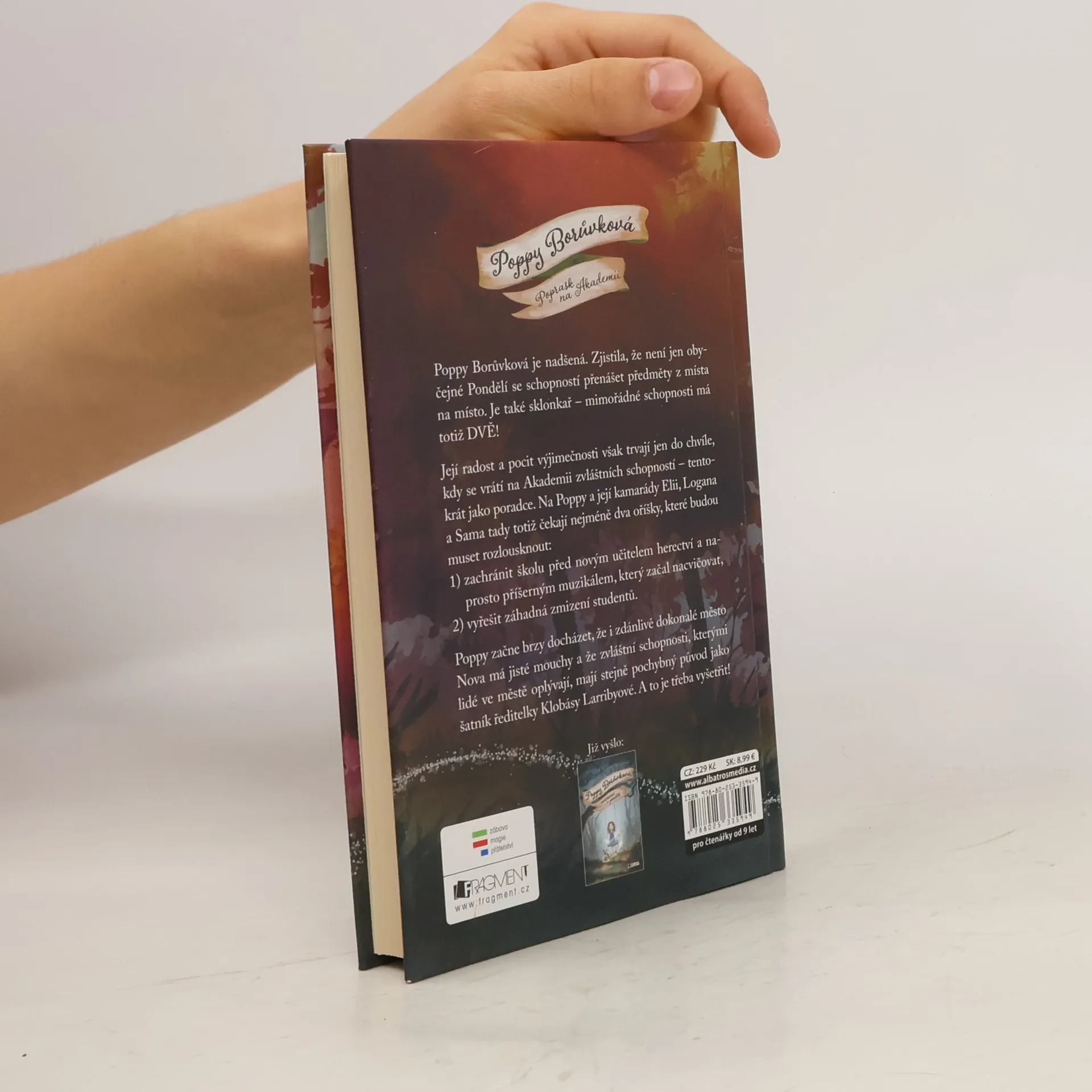 Poppy Borůvková je nadšená. Zjistila, že není jen obyčejné Pondělí se schopností přenášet předměty z místa na místo. Je také sklonkař – mimořádné schopnosti má totiž DVĚ! Její radost a pocit výjimečnosti však trvají jen do chvíle, kdy se vrátí na Akademii zvláštních schopností – tentokrát jako poradce. Na Poppy a její kamarády Elii, Logana a Sama tady totiž čekají nejméně dva oříšky, které budou muset rozlousknout: 1) zachránit školu před novýmu učitelem herectví a naprosto příšerným muzikálem, který začal nacvičovat 2) vyřešit záhadná zmizení studentů Poppy začne brzy docházet, že i zdánlivě dokonalé město Nova má jisté mouchy a že zvláštní schopnosti, kterými lidé ve městě oplývají, mají stejně pochybný původ, jako šatník ředitelky Klobásy Larribyové. A to je třeba vyšetřit!