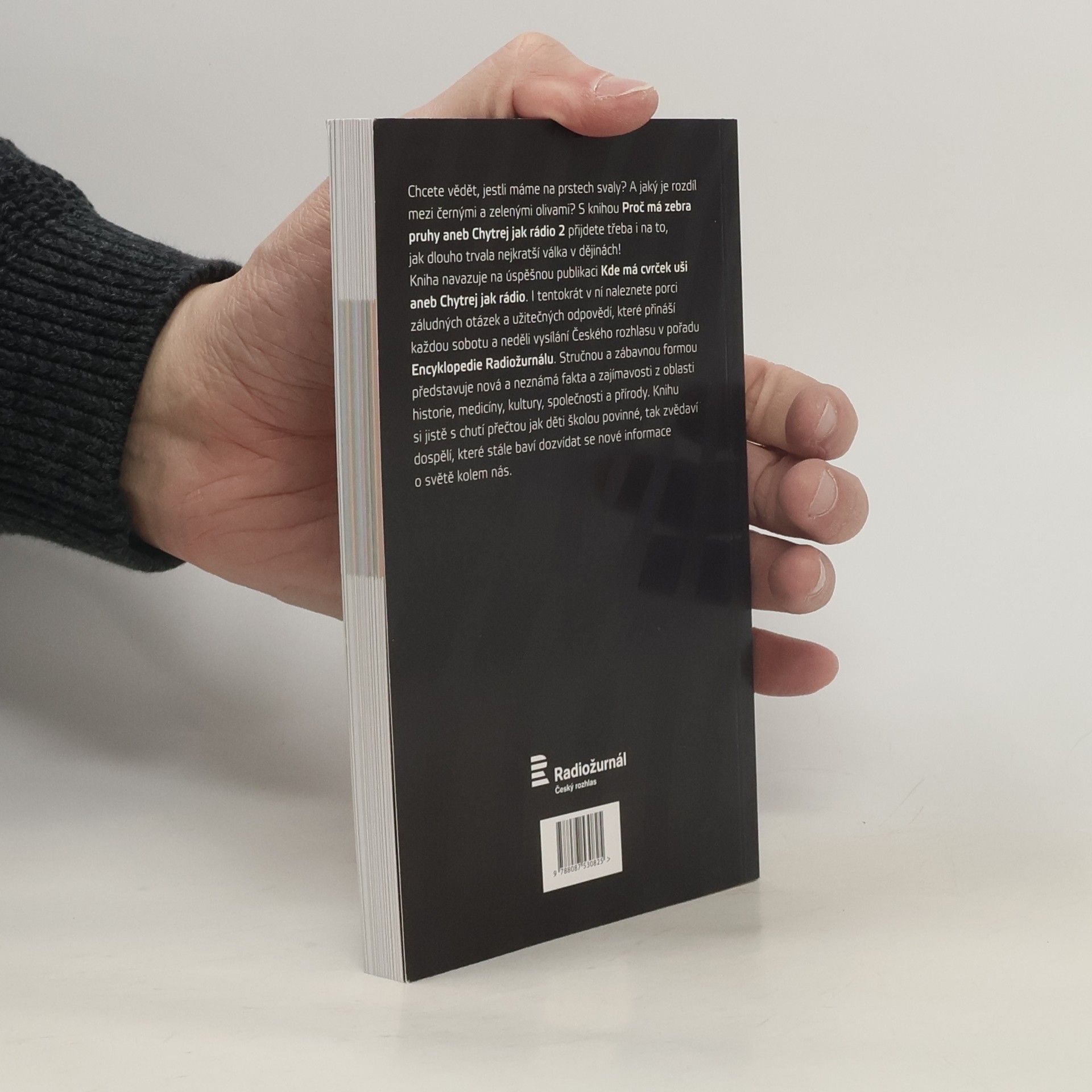 Které zvíře má nejvíce zubů? Co je klinománie? Od kdy pereme v pračce? Co to byla bramborová válka? Odpovědi na tyto i další záludné otázky přináší každou sobotu a neděli ve vysílání Českého rozhlasu Encyklopedie Radiožurnálu. A protože se tyto zajímavé informace v éteru jen mihnou, přicházejí autoři encyklopedie již podruhé s jejich knižním vydáním. Publikace Proč má zebra pruhy aneb Chytrej jak rádio 2 nabízí to, co se v běžných encyklopediích nedočtete. Stručnou a zábavnou formou představuje nová a neznámá fakta a zajímavosti z oblasti historie, medicíny, kultury, společenských či přírodních věd. A nejen to – snaží se také přijít na kloub mnohým populárním mýtům či nahlédnout pod povrch toho, co se každodenně děje kolem nás.