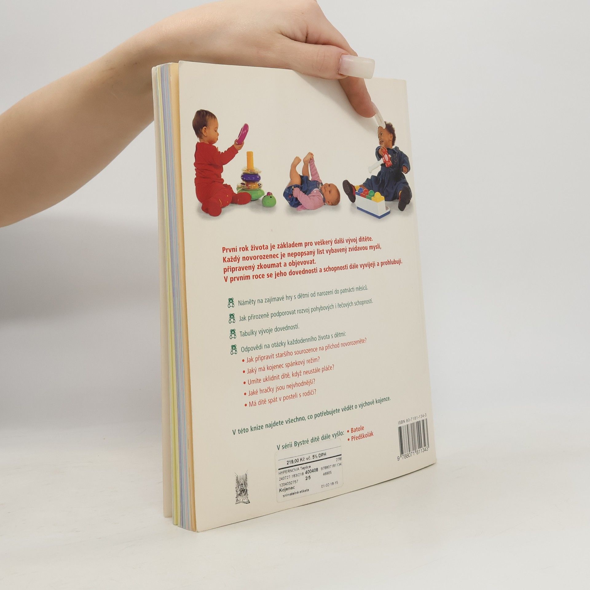 První rok života je základem pro veškerý další vývoj dítěte. Každý novorozenec je nepopsaný list vybavený zvídavou myslí, připravený zkoumat a objevovat. Tato kniha je plná námětů na zajímavé hry s dětmi od narození do patnácti měsíců, najdete zde tabulky vývoje dovedností a odpovědi na otázky každodenního života s dětmi, například: Jak připravit staršího sourozence na příchod novorozeněte? Jaký má kojenec spánkový režim? Jaké hračky jsou nejvhodnější? Kniha vám dále poradí, jak podporovat rozvoj dítěte