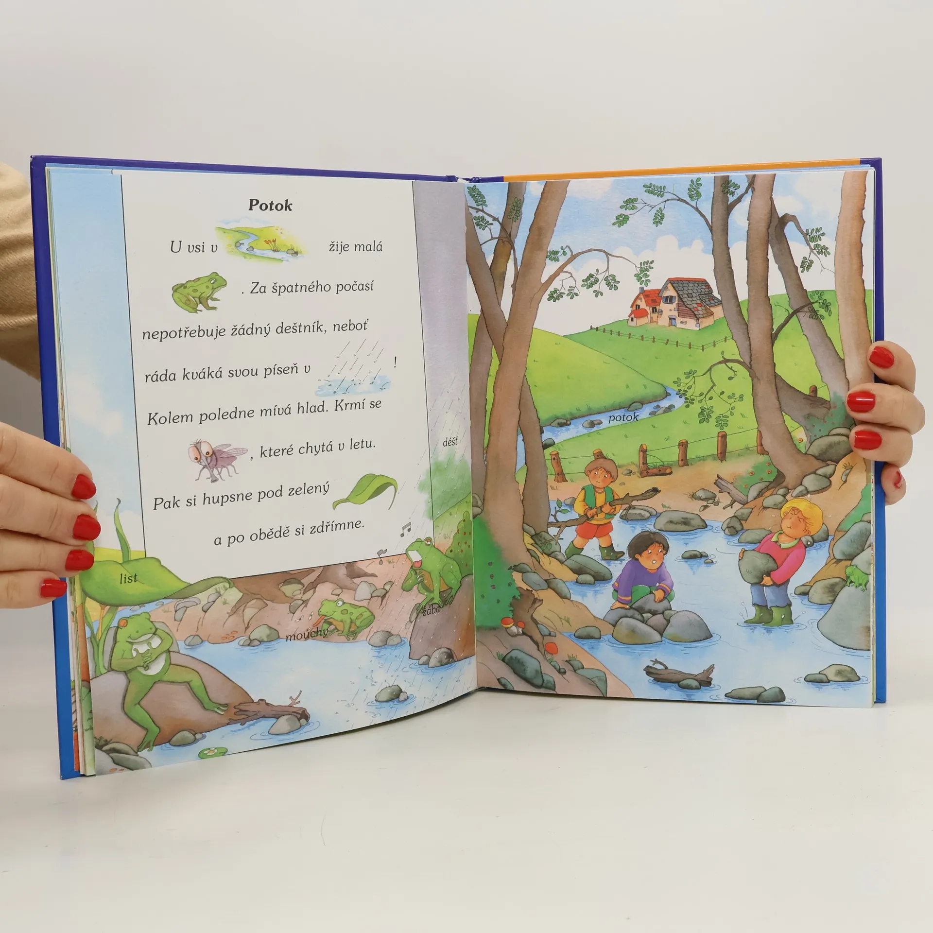 Kniha obsahuje krátké příběhy, v nichž jsou některá slova nahrazena obrázky. Dítě si hravou formou rozšíří slovní zásobu.