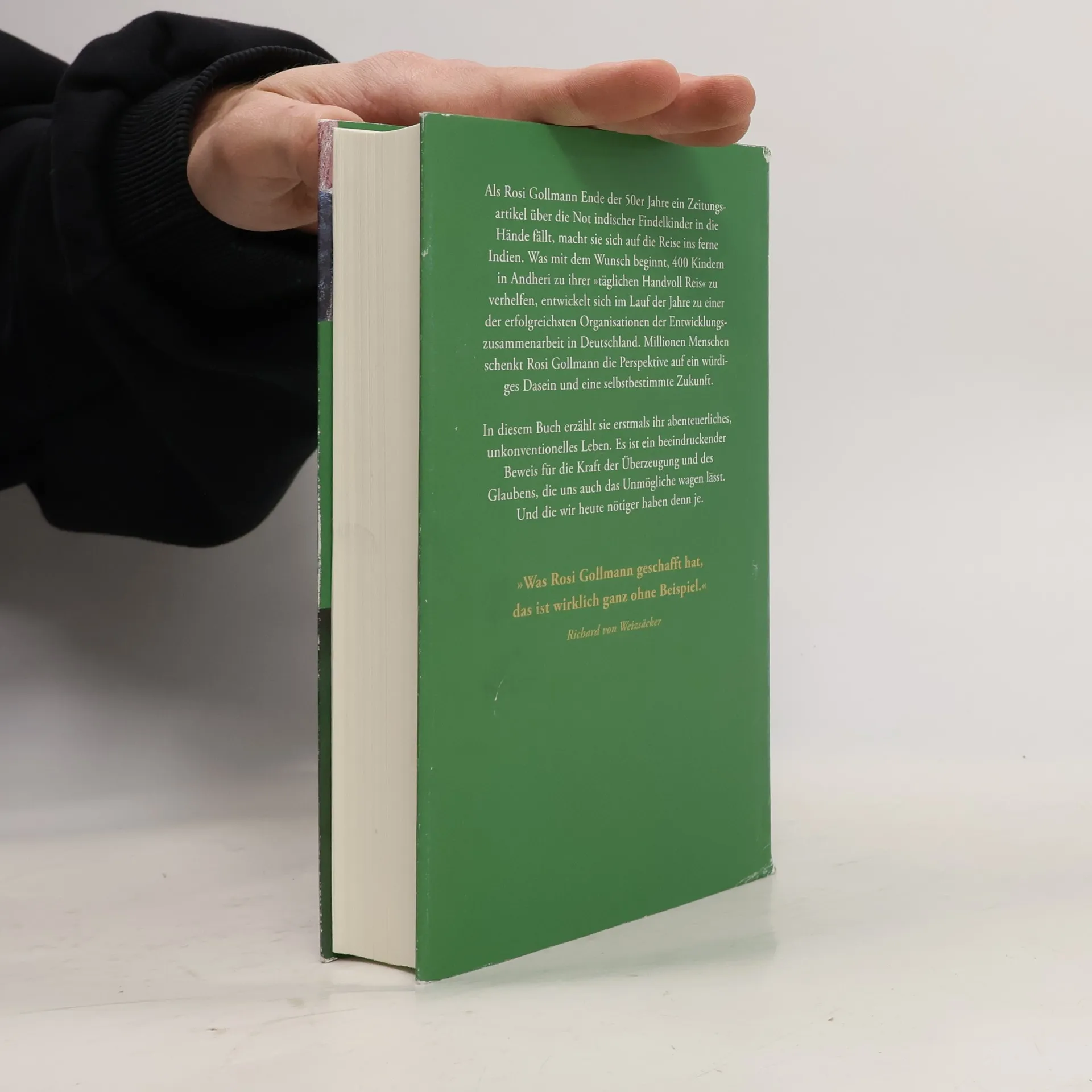 Rosi Gollmann hat ein außergewöhnliches Leben geführt, das von vollem Engagement geprägt ist. Ihre Geschichte beginnt 1959 mit einem Artikel über ein Waisenhaus in Indien, der sie dazu bewegt, selbst dorthin zu reisen. Die Ungerechtigkeiten, die sie dort sieht, inspirieren sie zu dem Traum von einer „einen Welt für alle“. Zusammen mit Gleichgesinnten gründet sie die Andheri-Hilfe und entwickelt Konzepte für eine „Hilfe zur Selbsthilfe“ für Bedürftige. Ihre Projekte umfassen die Bekämpfung von Kinderarbeit und Mädchentötung sowie die Stärkung von Frauen und Familien durch Mikrokredite. Dadurch ermöglicht sie unzähligen Kindern eine bessere Zukunft und hilft Menschen, ein Leben in Würde zu führen. Über eine Million Augenoperationen in Bangladesch bringen Blinden das Glück des Sehens zurück. Gollmanns persönliche Erlebnisse zeigen, dass eine bessere Welt möglich ist. Sie verkörpert Mut, Beharrlichkeit und den Glauben an das Gute, untermalt von Liebe. Ihre Geschichte ist eine Quelle der Hoffnung und inspiriert dazu, das Gute im Menschen zu entdecken. Es ist die Güte, die in den Augen besonderer Menschen leuchtet, und die Gollmann in ihrem faszinierenden Leben verkörpert.