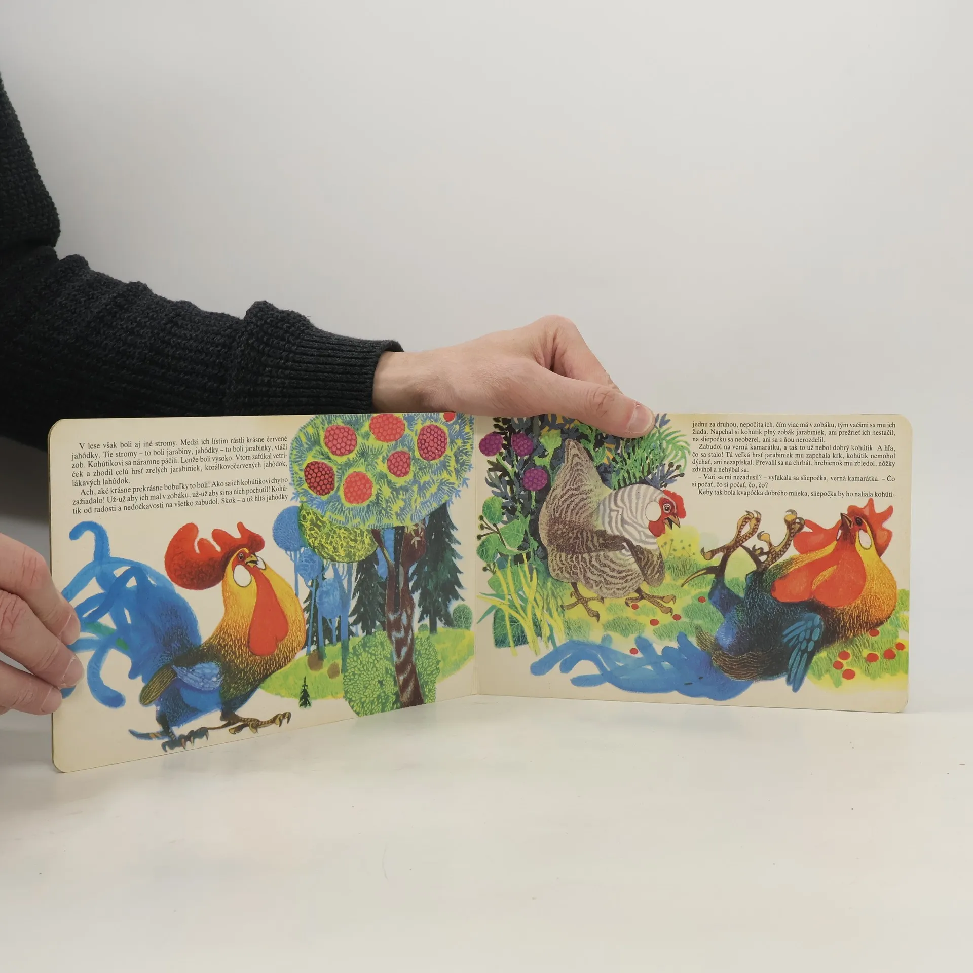 Leporelo o príhodách sliepočky a kohútika na dvore.