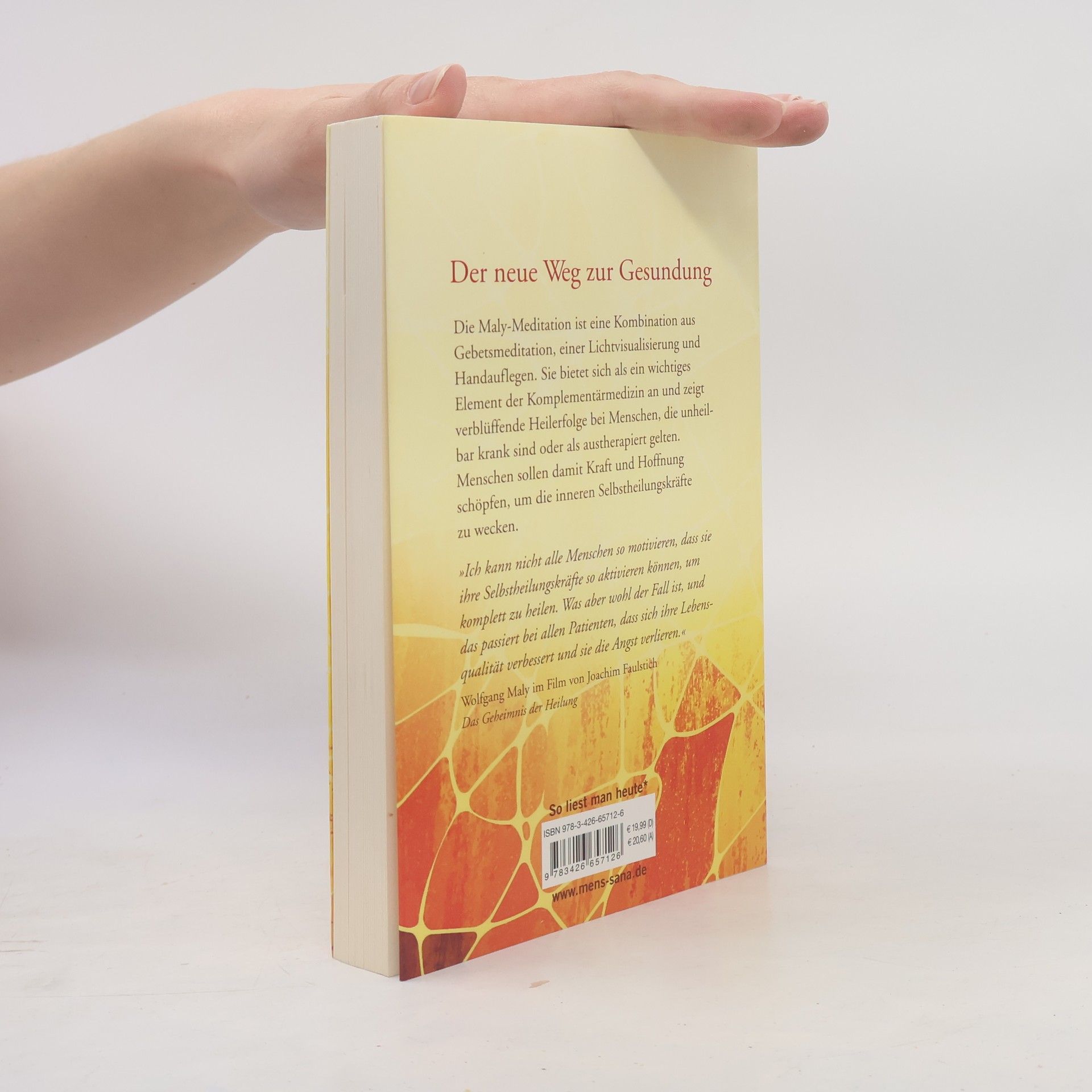 Entdecken Sie die Kraft der Heilmeditation - Wolfgang Malys revolutionärer Weg zur Genesung. Nach seiner eigenen schweren Erkrankung entwickelte Wolfgang Maly eine einzigartige Meditationstechnik, die ihm zu einer von Ärzten für unmöglich gehaltenen Gesundung verhalf. Seine Methode, eine Kombination aus Heilmeditation, Lichtvisualisierung und Handauflegen, wendet er inzwischen erfolgreich auch bei anderen Kranken an. Selbst Schulmediziner arbeiten eng mit ihm zusammen. In diesem Buch erklärt Maly seine wirkungsvolle Heilmethode ausführlich zur Selbstanwendung. Lernen Sie, durch geführte Meditationen und Lichtrituale Ihre Selbstheilungskräfte zu aktivieren und zu stärken. Entdecken Sie die Macht des spirituellen Handauflegens und des heilenden Gebets. Die Maly-Meditation ist ein unverzichtbarer Ratgeber für alle, die ihre körperliche und geistige Gesundheit verbessern möchten. Lassen Sie sich inspirieren und finden Sie Ihren Weg zu mehr Wohlbefinden und innerer Balance.