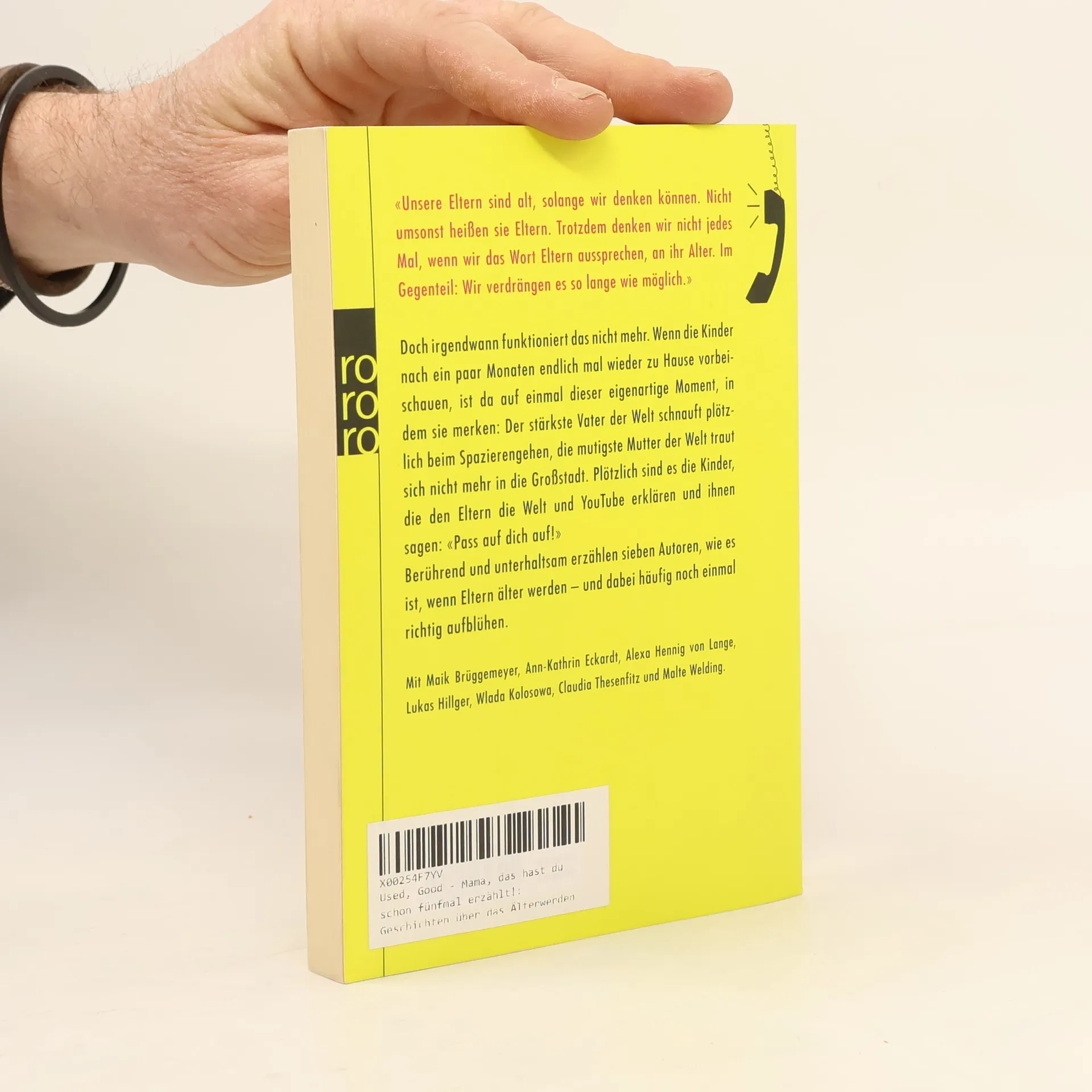 «Unsere Eltern sind alt, solange wir denken können. Nicht umsonst heißen sie Eltern. Trotzdem denken wir nicht jedes Mal, wenn wir das Wort Eltern aussprechen, an ihr Alter. Im Gegenteil: Wir verdrängen es so lange wie möglich.» Doch irgendwann funktioniert das nicht mehr. Wenn die Kinder nach ein paar Monaten endlich mal wieder zu Hause vorbeischauen, ist da auf einmal dieser eigenartige Moment, in dem sie merken: Der stärkste Vater der Welt schnauft plötzlich beim Spazierengehen, die mutigste Mutter der Welt traut sich nicht mehr in die Großstadt. Plötzlich sind es die Kinder, die den Eltern die Welt und YouTube erklären und ihnen sagen: «Pass auf dich auf!». Berührend und unterhaltsam erzählen sieben Autoren, wie es ist, wenn Eltern älter werden – und dabei häufig noch einmal richtig aufblühen. Mit Maik Brüggemeyer, Ann-Kathrin Eckardt, Alexa Hennig von Lange, Lukas Hillger, Wlada Kolosowa, Claudia Thesenfitz und Malte Welding.