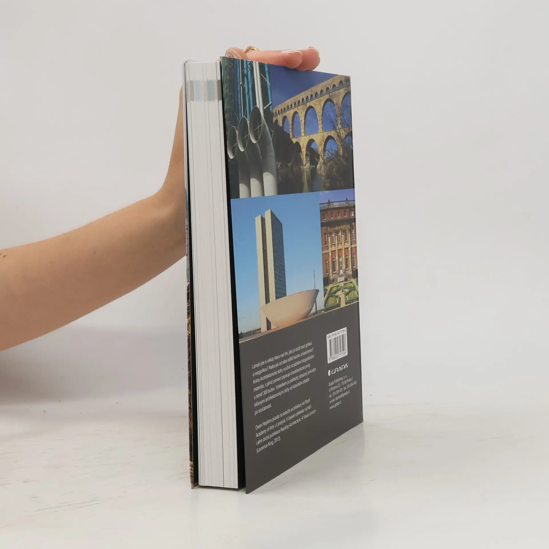 Lámali jste si někdy hlavu nad tím, jaký je rozdíl mezi gotikou a neogotikou? Nebo jak od sebe odlišit baroko a klasicismus? Kniha Architektonické slohy využívá rozsáhlého fotogra?ckého materiálu, s jehož pomocí popisuje charakteristické prvky u téměř 300 budov. Výsledkem je přehledný obrazový průvodce klíčovými slohy západní architektury od klasického období po současnost. Owen Hopkins působí na katedře architektury na Royal Academy of Arts v Londýně. V českém překladu vyjde také jeho druhá publikace Reading Architecture: A Visual Lexicon (Laurence King, 2012).