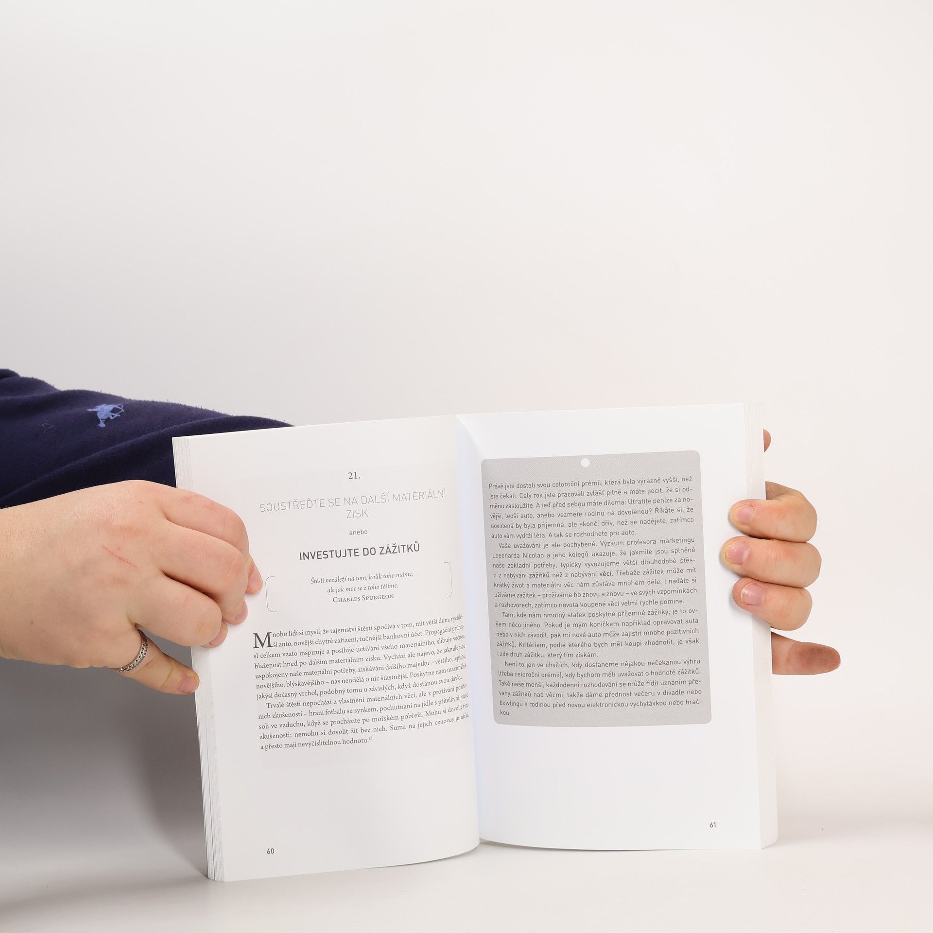 Tato kniha, patřící mezi světové bestsellery, vás naučí v životě nacházet a uvidět podněty, které v nás vyvolají pocity štěstí. Během čtení si uvědomíte, jak malá, zdánlivě nevýznamná rozhodnutí nám mohou významně změnit život k lepšímu, a objevíte všude kolem sebe mnoho pozitivních momentů, které jste dosud ve svém každodenním pachtění nevnímali. Na příkladu 101 každodenních situací vám autor ukazuje jednoduchou cestu k pozitivním změnám, neboť každý okamžik našeho života můžeme využít k novému rozhodnutí, nové volbě. „Tal Ben-Shahar objasňuje jednotlivé prvky šťastnějšího života v krátkých kapitolách, které inspirují čtenáře, aby se hlouběji zamysleli nad svým životem, začali jednat a proměnili ideje ve skutečnost.“ - Gretchen Rubinová, New York Times – autorka bestselleru Projekt štěstí Tal Ben-Shahar, odborník na pozitivní psychologii, je mimo jiné autorem New York Times bestselleru Happier. Tuto knihu napsal na základě nejnovějších psychologických výzkumů.