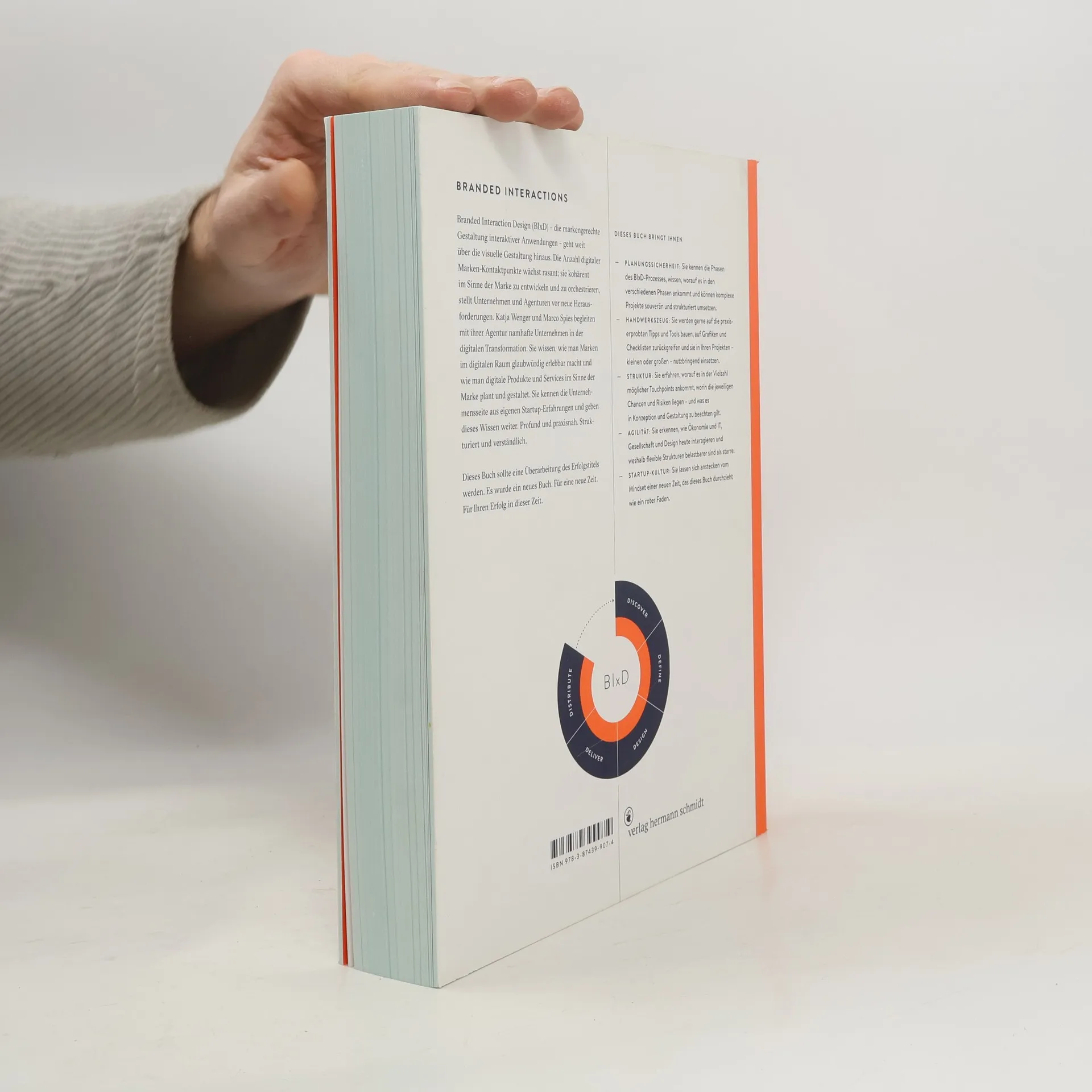 Branded Interaction Design (BIxD) – die markengerechte Gestaltung interaktiver Anwendungen – geht über die visuelle Gestaltung hinaus. Die Zahl digitaler Marken-Kontaktpunkte wächst rasant, was Unternehmen und Agenturen vor neue Herausforderungen stellt. Katja Wenger und Marco Spies begleiten namhafte Unternehmen in der digitalen Transformation und wissen, wie man Marken glaubwürdig im digitalen Raum erlebbar macht. Sie teilen ihre Erfahrungen aus der Start-up-Welt, um profundes und praxisnahes Wissen zu vermitteln. Dieses Buch bietet: - Planungssicherheit: Sie lernen die Phasen des BIxD-Prozesses kennen und können komplexe Projekte strukturiert umsetzen. - Handwerkszeug: Nutzen Sie praxiserprobte Tipps, Tools, Grafiken und Checklisten für Ihre Projekte. - Struktur: Erfahren Sie, worauf es bei verschiedenen Touchpoints ankommt, welche Chancen und Risiken bestehen und was bei Konzeption und Gestaltung zu beachten ist. - Agilität: Verstehen Sie die Interaktion von Ökonomie, IT, Gesellschaft und Design und warum flexible Strukturen belastbarer sind. - Start-up-Kultur: Lassen Sie sich vom Mindset einer neuen Zeit inspirieren, das sich durch das Buch zieht. Dieses Buch ist eine Überarbeitung des Erfolgstitels und bietet frische Perspektiven für Ihren Erfolg in einer neuen Zeit.