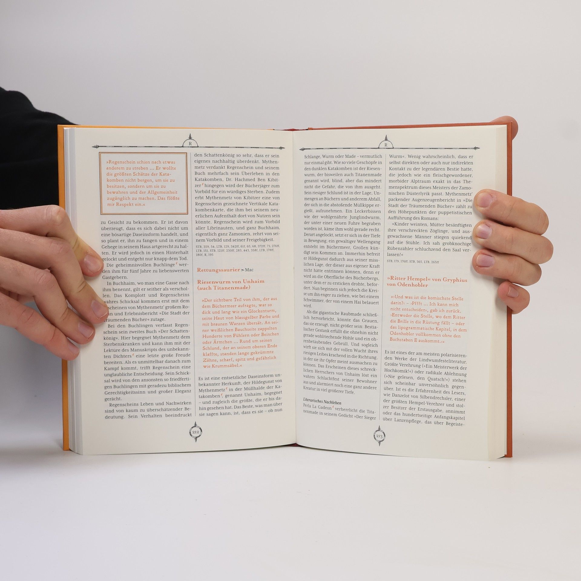 Zamonien für Anfänger und Fortgeschrittene und solche, die es werden wollen! Alles, was die Welt über Walter Moers’ phantastischen Kontinent Zamonien wissen sollte: Dieses reich illustrierte und liebevoll gestaltete Lexikon präsentiert die Fülle dieser Welt in über 150 verschwenderisch illustrierten Artikeln: über Buchhaim und Brummli, Hel und Haifischmaden, Kakertratten und Kometenwein, Orm und Olz, Schrecksen und Stollentrolle, Untenwelt, Unvorhandene Winzlinge und vieles andere mehr … Millionen Leser weltweit folgen Buch für Buch den Helden von Walter Moers und Hildegunst von Mythenmetz auf den phantastischen Kontinent Zamonien, wo es von skurrilen Daseinsformen, unglaublichen Naturerscheinungen, fabelhaften Errungenschaften von Kunst und Wissenschaft, aber auch Abenteuern aller Art nur so wimmelt. Und so ist es kein Wunder, dass Zamonien jede Menge Fragen aufwirft: Lebende Bücher – Wirklichkeit oder Fiktion? Was ist eigentlich das Orm? Wie durchquert man einen Bolloggkopf? Wo bekommt man in Zamonien die besten Rauschmittel? Ernähren sich Buchlinge wirklich von Büchern? Reicht Zamonisch oder braucht man auch Frostfrattisch? Wie tickt General Ticktack? Anja Dollinger ist es gelungen, Licht in die dunklen Geheimnisse dieser rätselhaften Welt des Walter Moers zu bringen. Ausstattung: mit zahlreichen Illustrationen