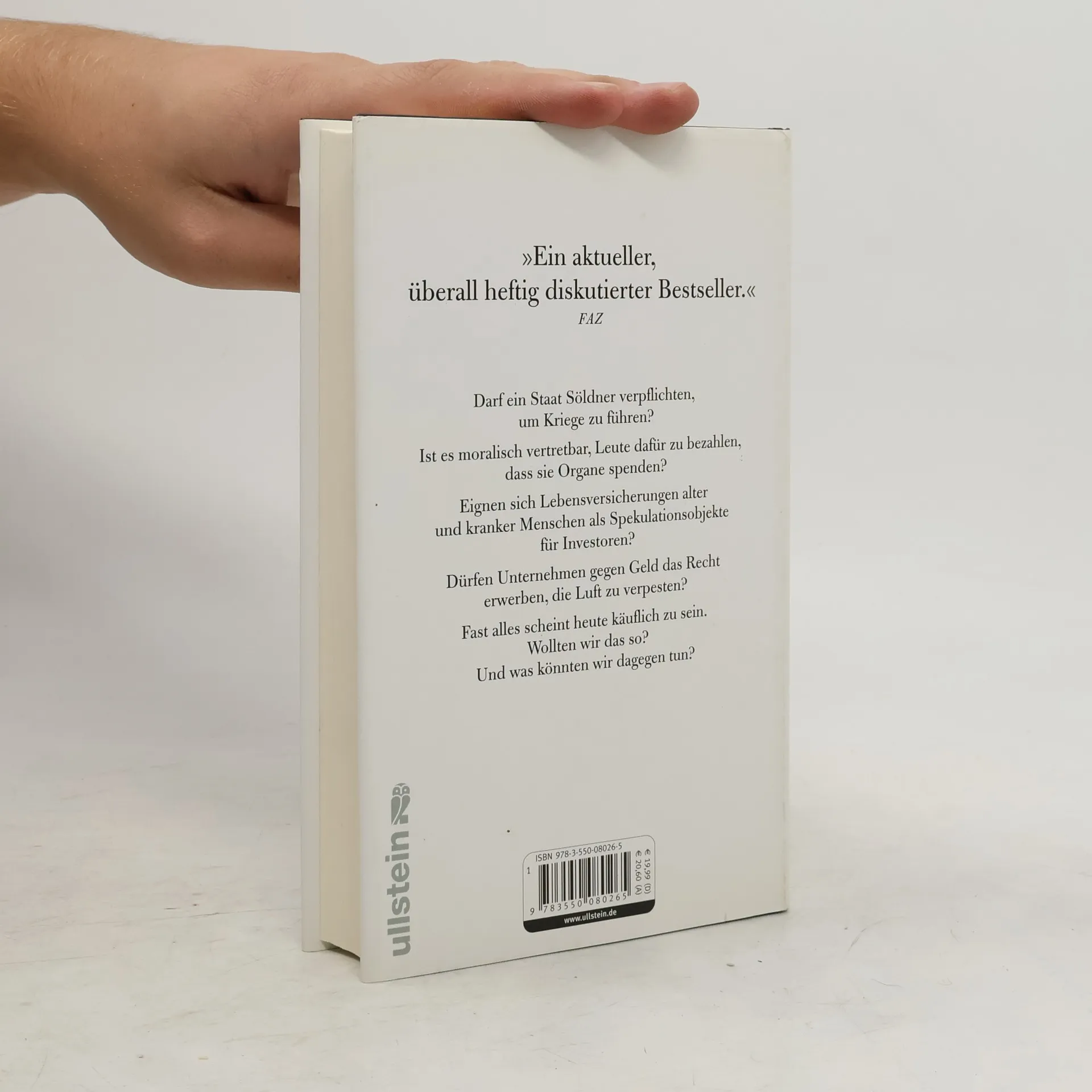 Darf ein Staat Söldner verpflichten, um Kriege zu führen? Ist es moralisch vertretbar, Leute dafür zu bezahlen, dass sie Medikamente testen oder Organe spenden? Dürfen Unternehmen gegen Geld das Recht erwerben, die Luft zu verpesten? Fast alles scheint heute käuflich zu sein. Wollten wir das so? Und was könnten wir dagegen tun? Die Regeln des Marktes haben fast alle Lebensbereiche infiltriert, auch jene, die eigentlich jenseits von Konsum und Mehrwert liegen sollten: Medizin, Erziehung, Politik, Recht und Gesetz, Kunst, Sport, sogar Familie und Partnerschaft. Ohne es zu merken, haben wir uns von einer Marktwirtschaft in eine Marktgesellschaft gewandelt. Ist da nicht etwas grundlegend schief gelaufen? Mit Verve und anhand prägnanter Beispiele wirft Michael Sandel eine der wichtigsten ethischen Fragen unserer Zeit auf: Wie können wir den Markt daran hindern, Felder zu beherrschen, in denen er nichts zu suchen hat? Wo liegen seine moralischen Grenzen? Und wie können wir zivilisatorische Errungenschaften bewahren, für die sich der Markt nicht interessiert und die man für kein Geld der Welt kaufen kann?