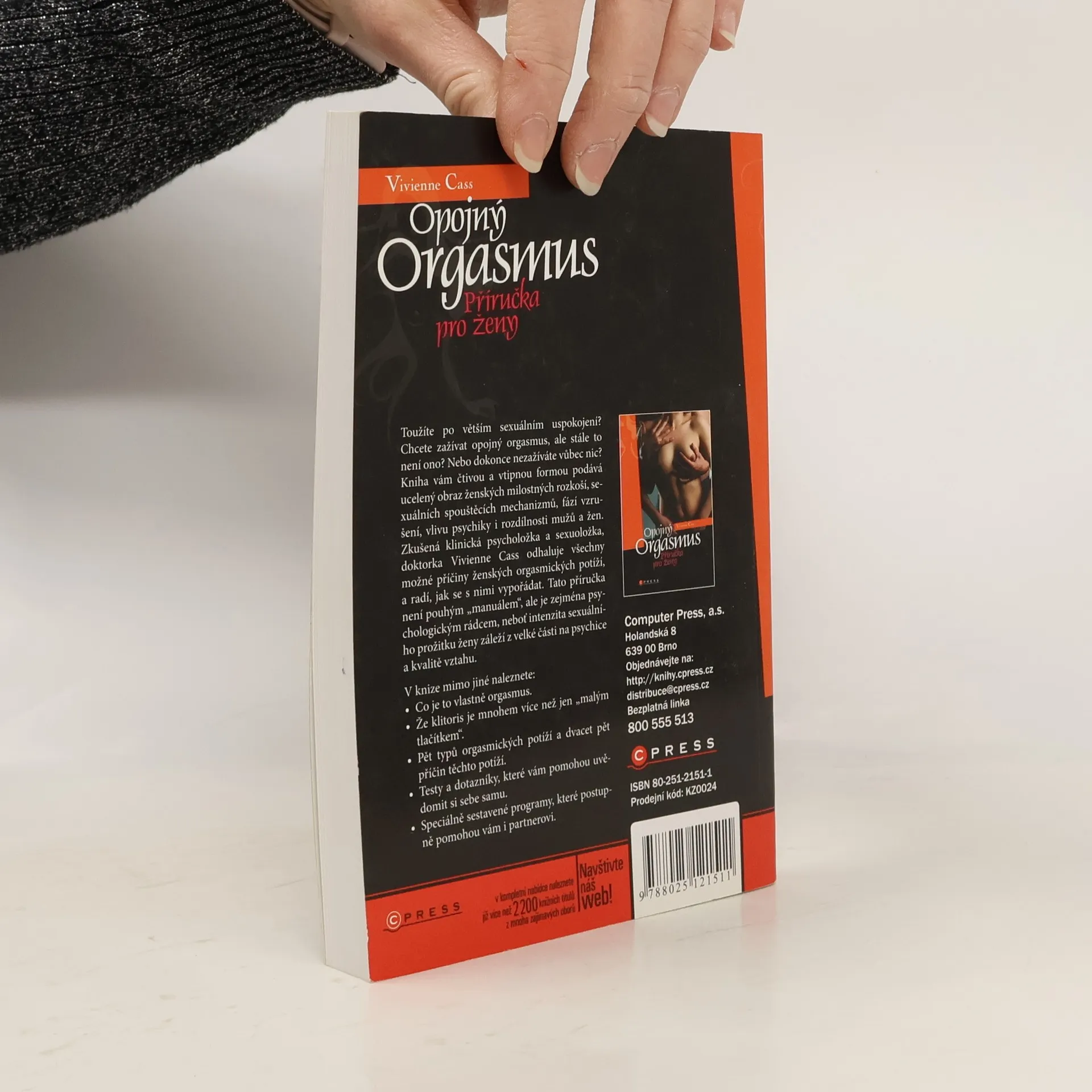 Toužíte po větším sexuálním uspokojení? Chcete zažívat opojný orgasmus, ale stále to není ono? Nebo dokonce nezažíváte vůbec nic? Kniha vám čtivou a vtipnou formou podává ucelený obraz ženských milostných rozkoší, sexuálních spouštěcích mechanizmů, fází vzrušení, vlivu psychiky i rozdílnosti mužů a žen. Zkušená klinická psycholožka a sexuoložka, doktorka Vivienne Cass odhaluje všechny možné příčiny ženských orgasmických potíží, a radí, jak se s nimi vypořádat. Tato příručka není pouhým „manuálem“, ale je zejména psychologickým rádcem, neboť intenzita sexuálního prožitku ženy záleží z velké části na psychice a kvalitě vztahu