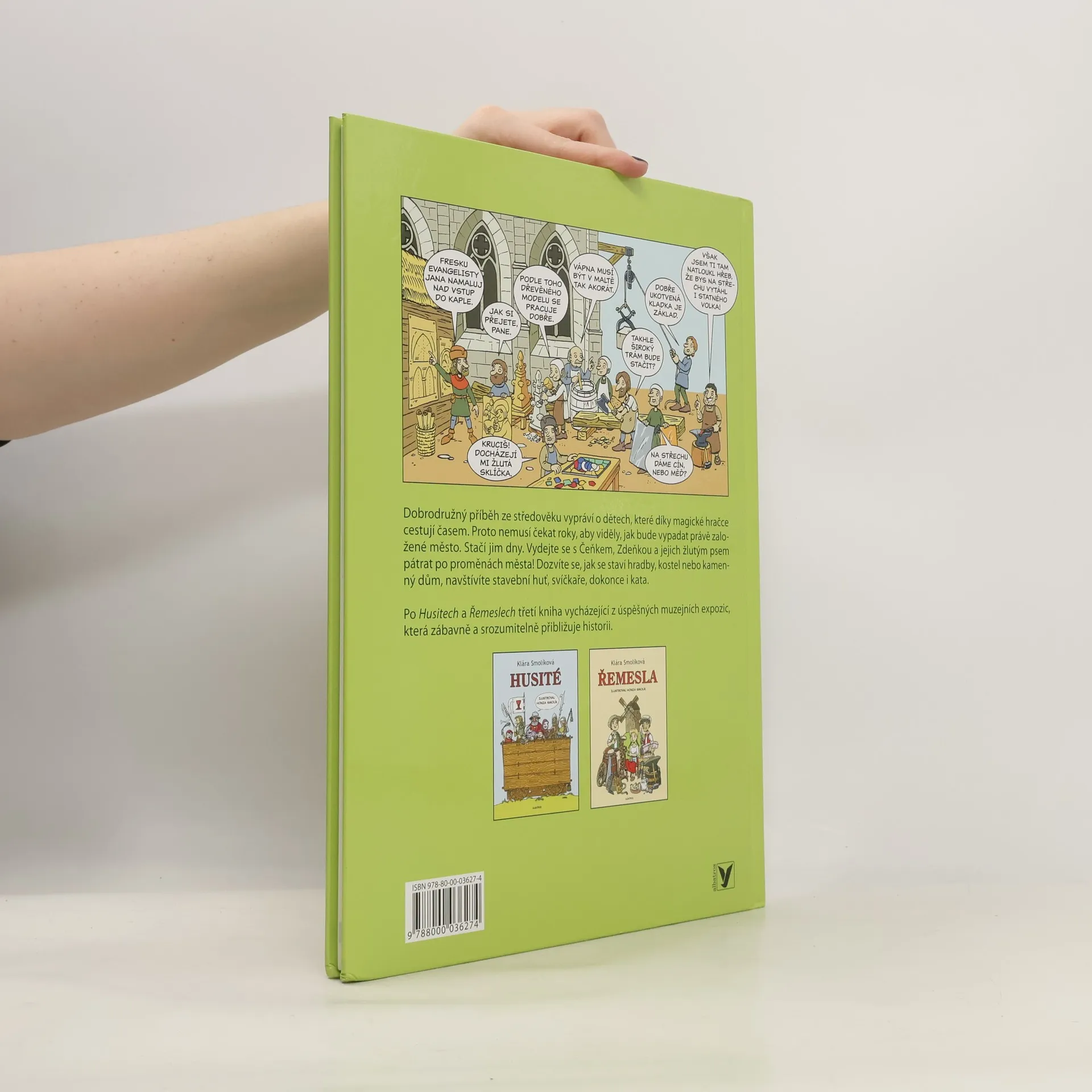Kniha je třetí publikací volné série popularizující historii (po úspěšných Husitech a Řemeslech). Opět je inspirována vyzkoušenými muzejními programy určenými dětem, které Klára Smolíková připravuje a realizuje. Autorka nápaditě spojuje příběh dětských hrdinů s poznatky, které hravě a srozumitelně podává. Tentokrát bude chlapec Čeněk a holčička Zdeňka putovat časem, aby krok za krokem viděli, jak roste město, jak se staví a proměňuje. Kniha obsahuje celostránkové, velkoryse pojaté ilustrace Honzy Smolíka, které názorně představí opevnění, radnici nebo katedrálu, ale také pobaví vtipnými situacemi, detaily a komiksovými sekvencemi. Publikace představuje ideální pomůcku pro pátrání po historii našich měst, univerzálního průvodce, nad kterým si rodiče, prarodiče nebo učitelé mohou povídat s dětmi například o tom: * že města tu nejsou odjakživa * jak se jejich podoba i rozloha měnila * proč se stavěla radnice a jaká měla práva * v jakém domě žil ctihodný měšťan * které řemeslníky bychom zde potkali před pěti sty lety a které před sto lety * kvůli čemu se bouralo městské opevnění