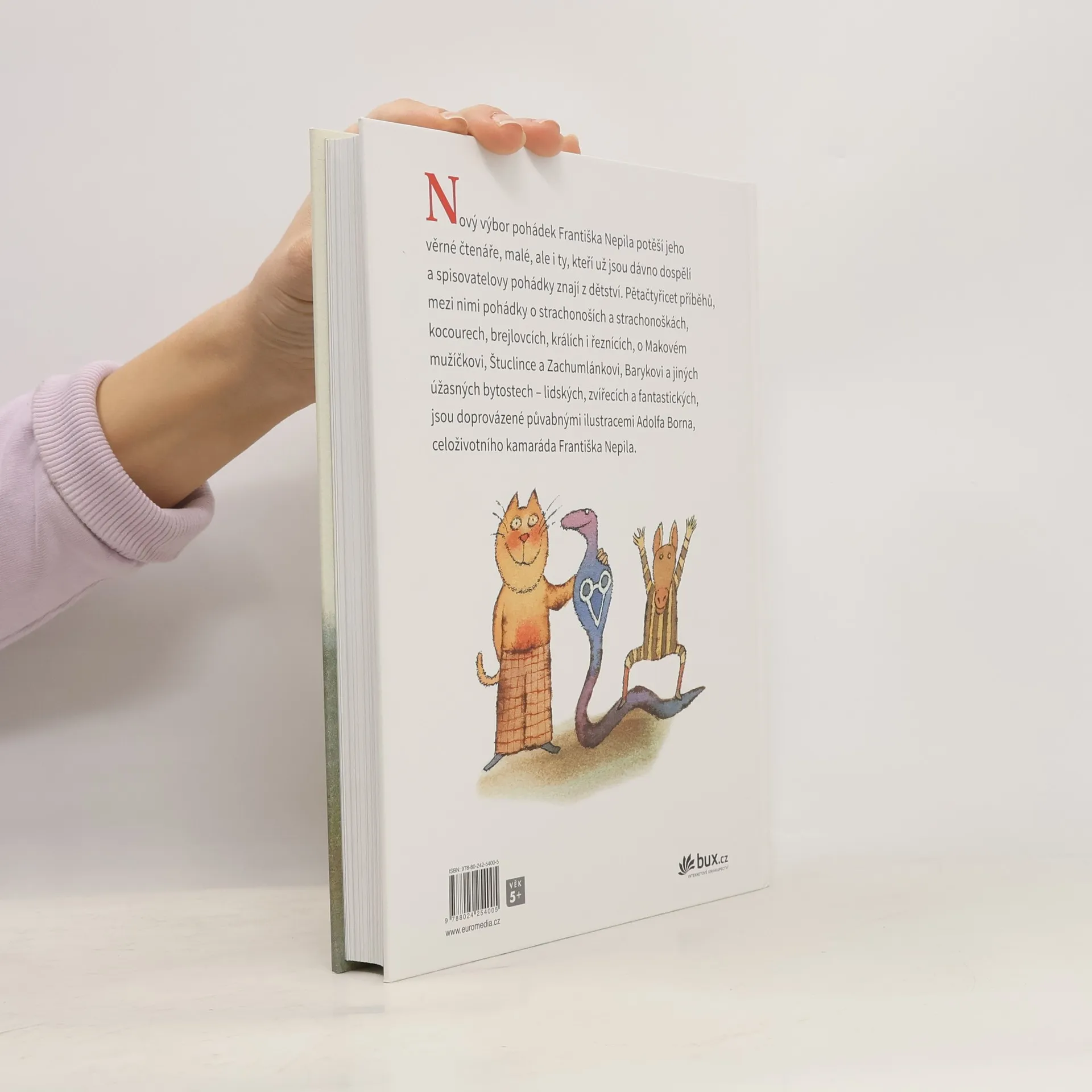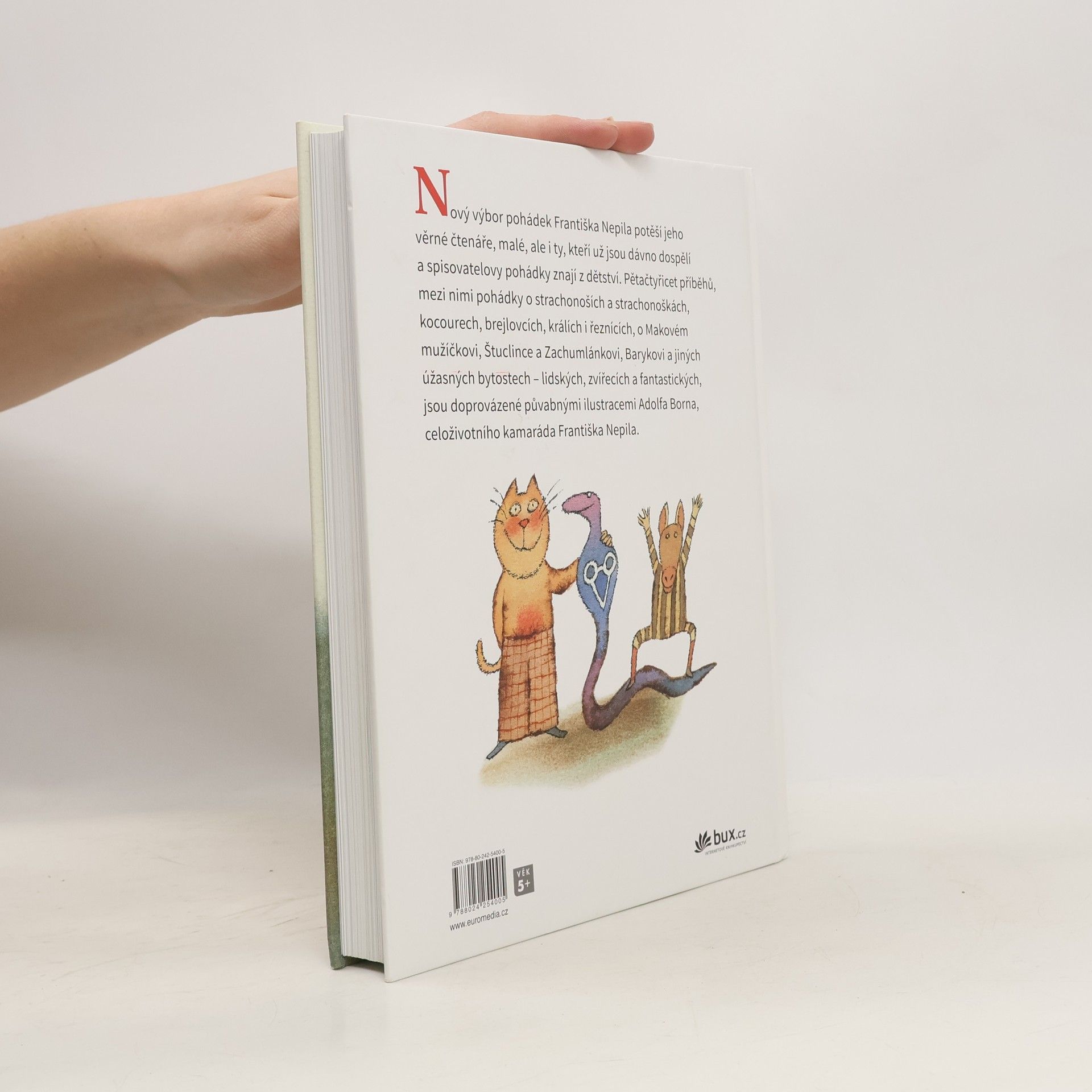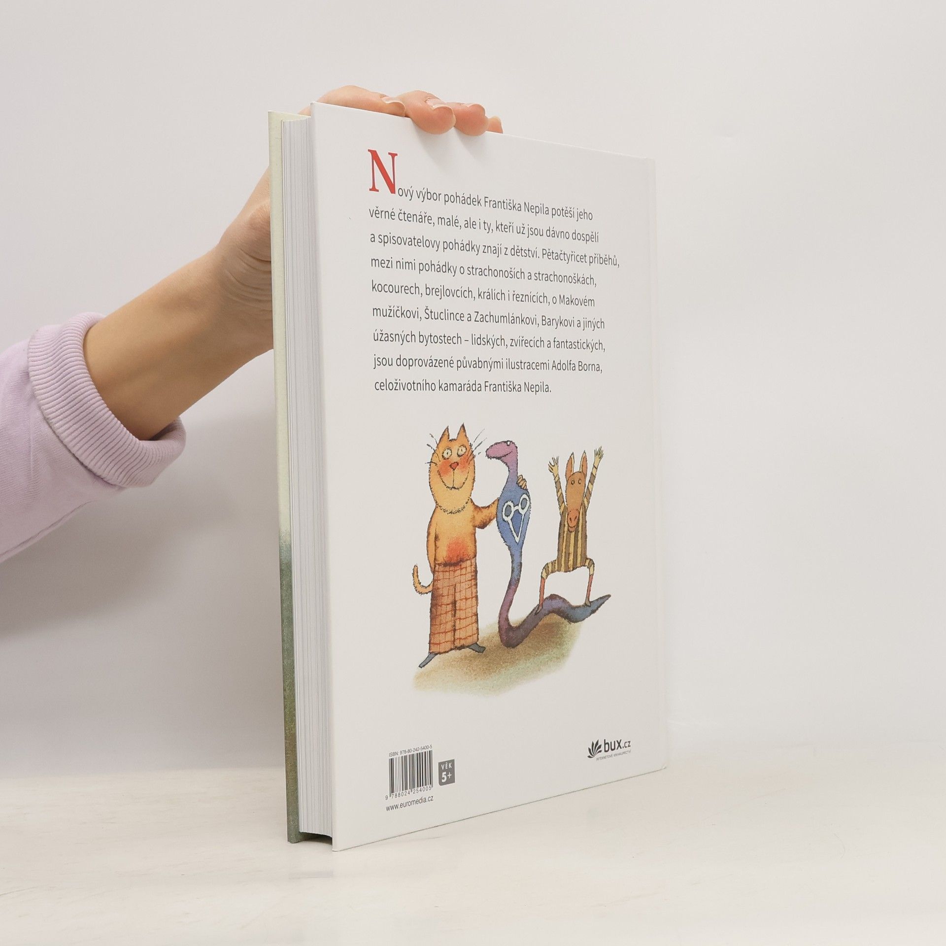 Nový výbor pohádkových příběhů Františka Nepila potěší jeho věrné čtenáře, malé, ale i ty, kteří už jsou dávno dospělí a spisovatelovy pohádky znají z dětství. František Nepil byl jedním z velkých vypravěčů minulého půlstoletí a jeho pohádky jsou zvlášť půvabné. Výbor zahrnuje pětačtyřicet příběhů, mezi nimi pohádky o strachonoších a strachonoškách, kocourech, brejlovcích, králích i řeznících, o Makovém mužíčkovi, Štuclince a Zachumlánkovi, Barykovi a jiných úžasných bytostech – lidských, zvířecích a fantastických. Knihu doprovází ilustrace letitého kamaráda a souseda Františka Nepila, Adolfa Borna.