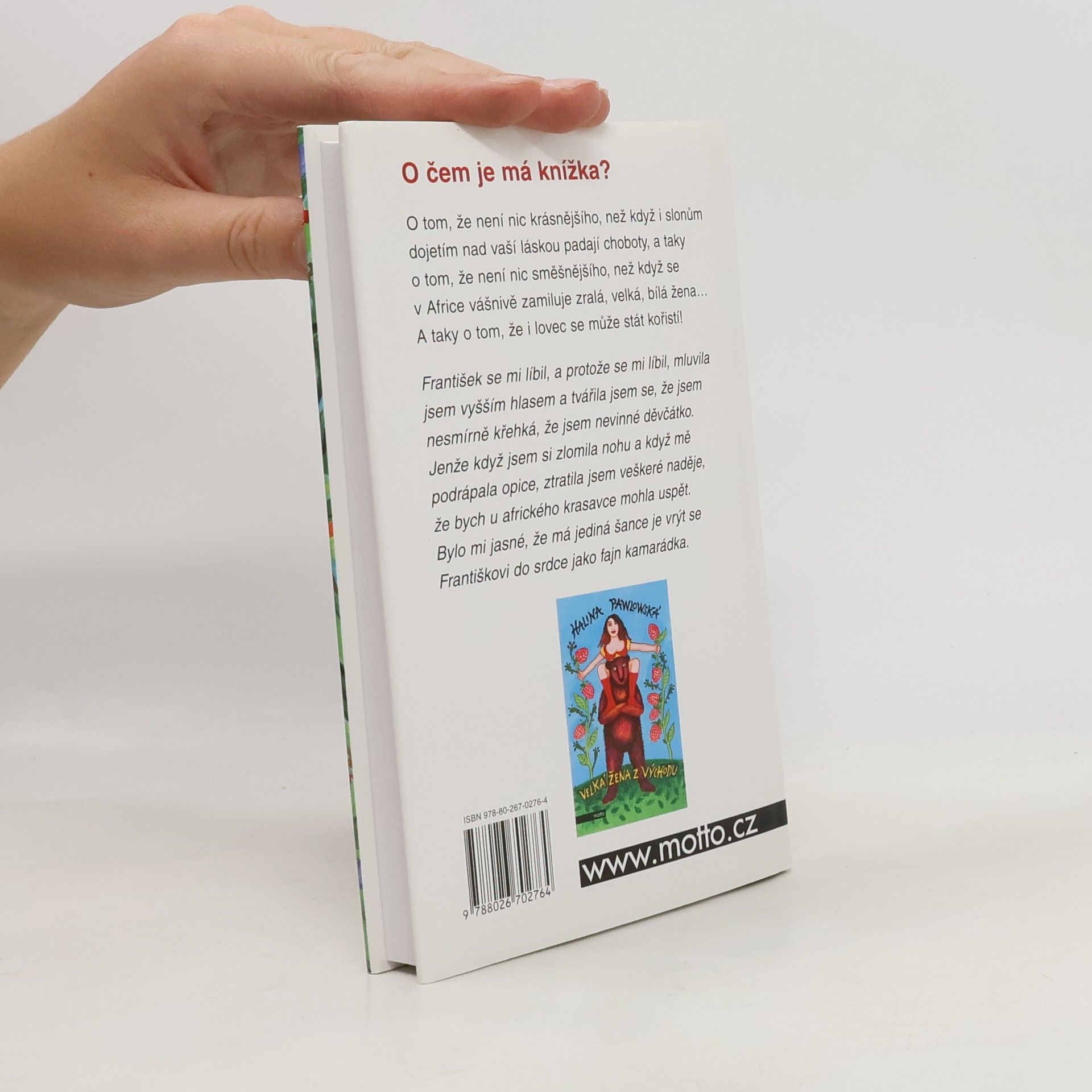 O čem bude má knížka? O tom, že není nic krásnějšího, než když i slonům dojetím nad vaší láskou padají choboty, a taky o tom, že není nic směšnějšího, než když se v Africe vášnivě zamiluje zralá, velká, bílá žena… A taky o tom, že i lovec se může stát kořistí!