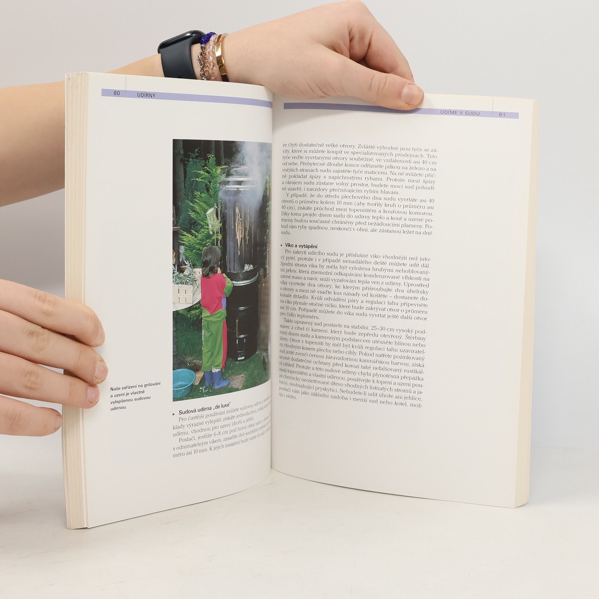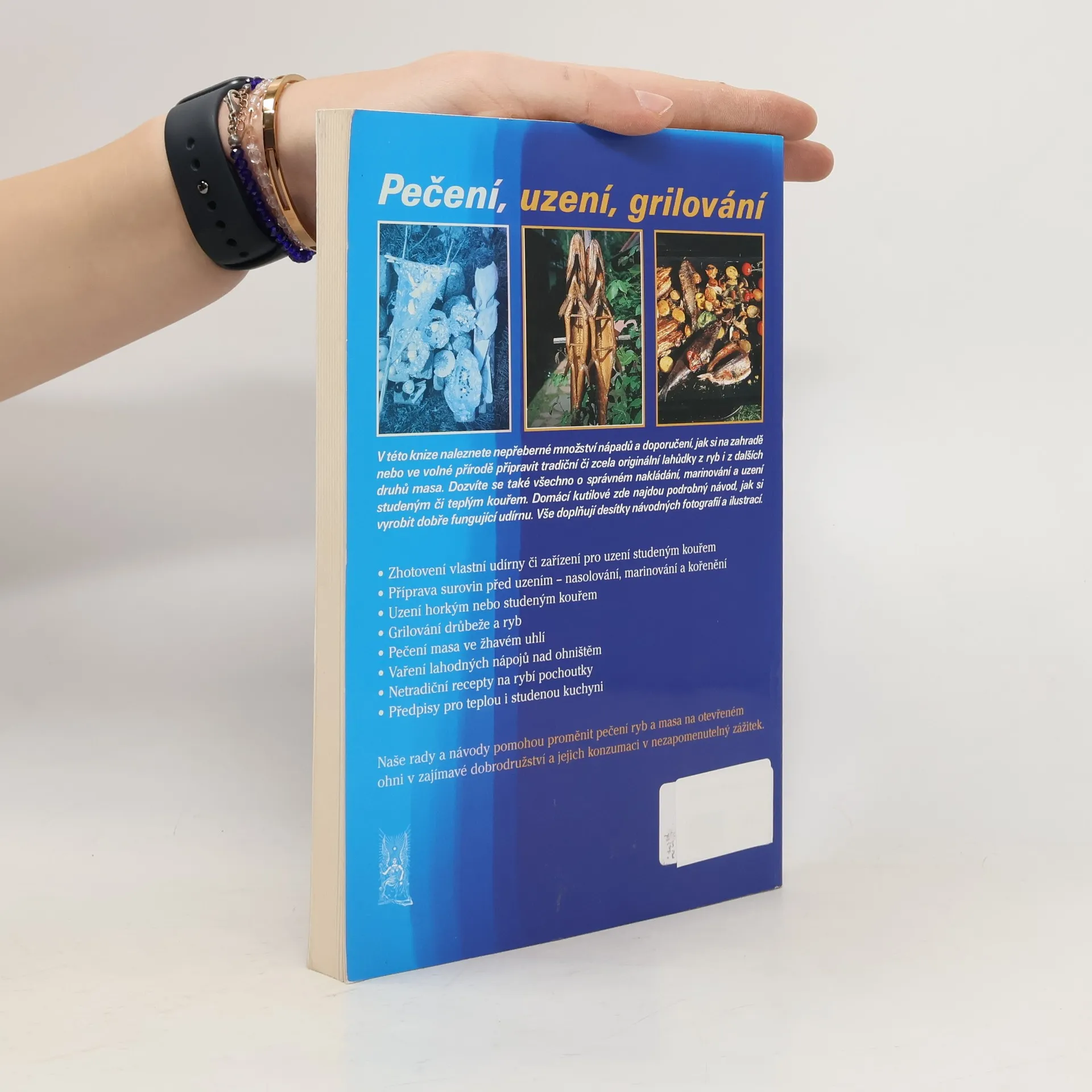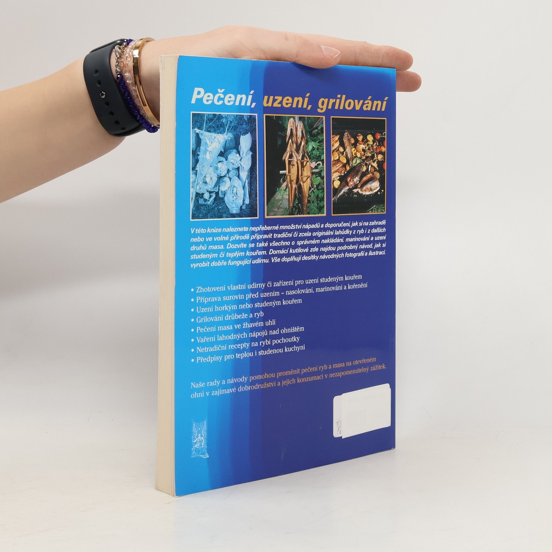 V této knize naleznete nepřeberné množství nápadů a doporučení, jak si na zahradě nebo ve volné přírodě připravit tradiční či zcela originální lahůdky z ryb i z dalších druhů masa. Dozvíte se také všechno o správném nakládání, marinování a uzení studeným či teplým kouřem. Domácí kutilové zde najdou podrobný návod, jak si vyrobit dobře fungující udírnu. Vše doplňují desítky návodných fotografií a ilustrací. Stavba vlastní udírny či zařízení pro uzení studeným kouřem Příprava surovin před uzením – nasolování, marinování a kořenění Uzení horkým nebo studeným kouřem Grilování drůbeže a ryb Pečení masa ve žhavém uhlí Vaření lahodných nápojů nad ohništěm Netradiční recepty na rybí pochoutky Předpisy pro teplou i studenou kuchyni Naše rady a návody pomohou proměnit pečení ryb na otevřeném ohni v zajímavé dobrodružství a jejich konzumaci v nezapomenutelný zážitek.