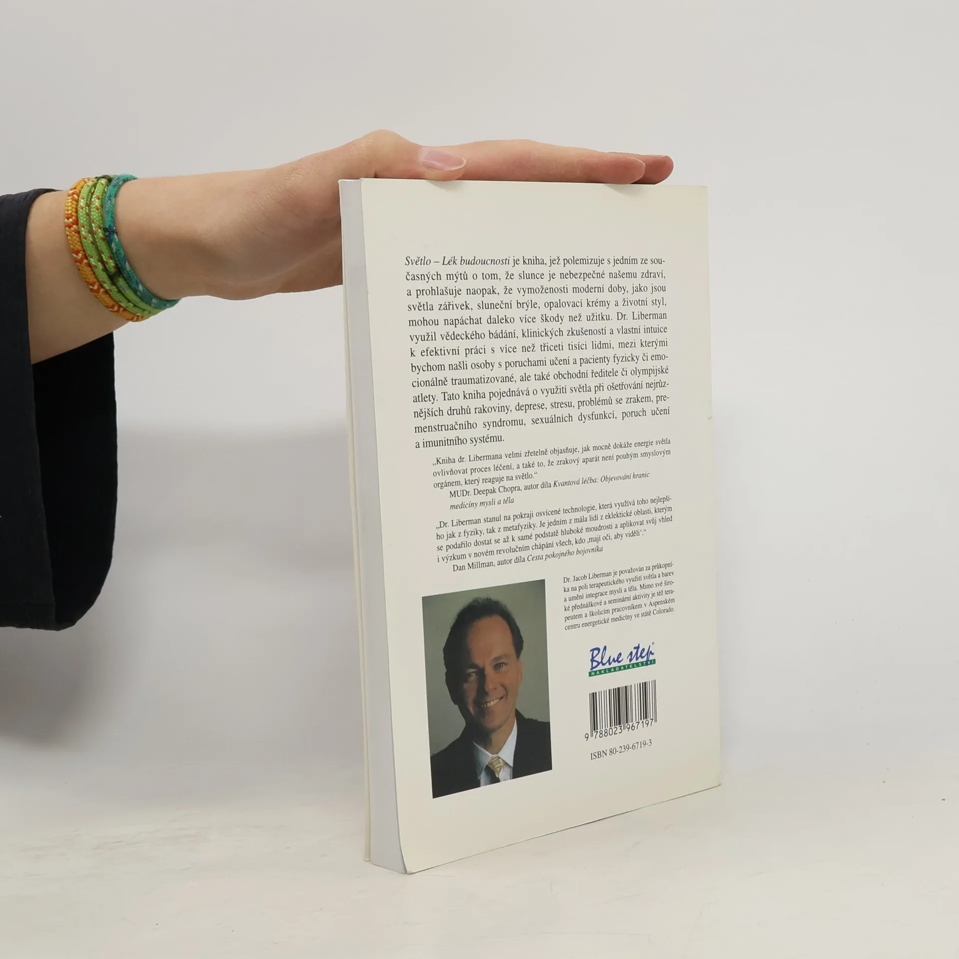 Dr. Jacob Liberman je průkopníkem terapeutického využití světla a barev a integrace mysli a těla. Kromě přednášek a seminářů působí jako terapeut v Aspenském centru energetické medicíny v Coloradu. Kniha zpochybňuje mýtus o nebezpečnosti slunce pro zdraví a tvrdí, že moderní vymoženosti, jako jsou zářivky, sluneční brýle a opalovací krémy, mohou být škodlivější než prospěšné. Dr. Liberman čerpal z vědeckého bádání, klinických zkušeností a intuice při práci s více než třiceti tisíci lidmi, včetně pacientů s poruchami učení, traumatizovaných jedinců, obchodních ředitelů a olympijských atletů. Kniha se zaměřuje na využití světla při léčbě různých onemocnění, včetně rakoviny, deprese, stresu, problémů se zrakem, premenstruačního syndromu, sexuálních dysfunkcí a poruch imunitního systému. MUDr. Deepak Chopra poznamenává, že kniha jasně ukazuje moc energie světla v procesu léčení a zdůrazňuje, že zrakový aparát není pouze smyslovým orgánem. Dan Millman dodává, že Dr. Liberman využívá osvícenou technologii, která spojuje fyziku a metafyziku, a jeho práce přináší revoluční chápání pro všechny, kdo mají oči, aby "viděli."