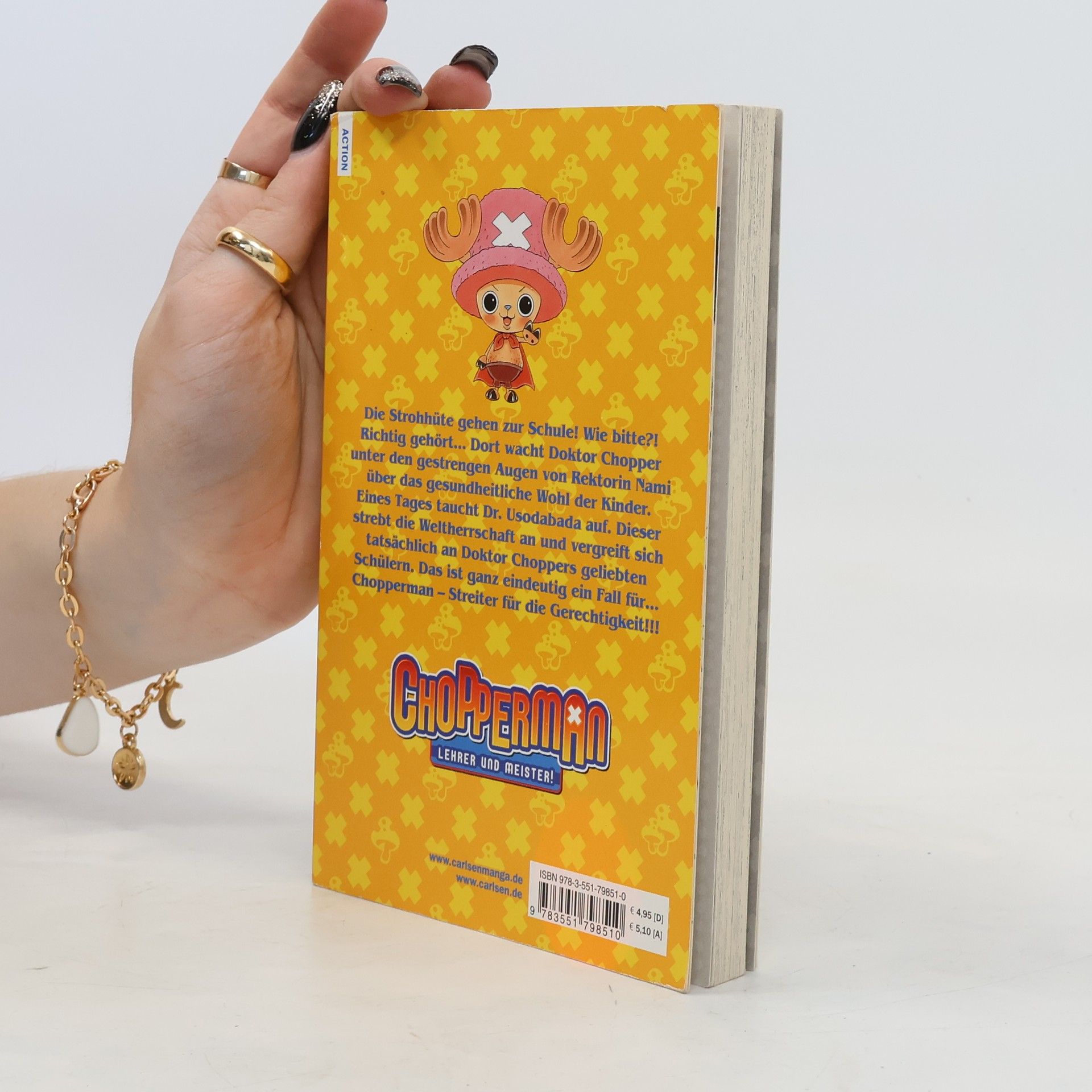 Die Strohhüte gehen zur Schule! Wie bitte?! Richtig gehört… Dort wacht Doktor Chopper unter den gestrengen Augen von Rektorin Nami über das gesundheitliche Wohl der Kinder. Eines Tages taucht Dr. Lysodabada auf. Dieser strebt die Weltherrschaft an und vergreift sich tatsächlich an Doktor Choppers geliebten Schülern. Das ist ganz eindeutig ein Fall für… Chopperman – Streiter für die Gerechtigkeit!!!