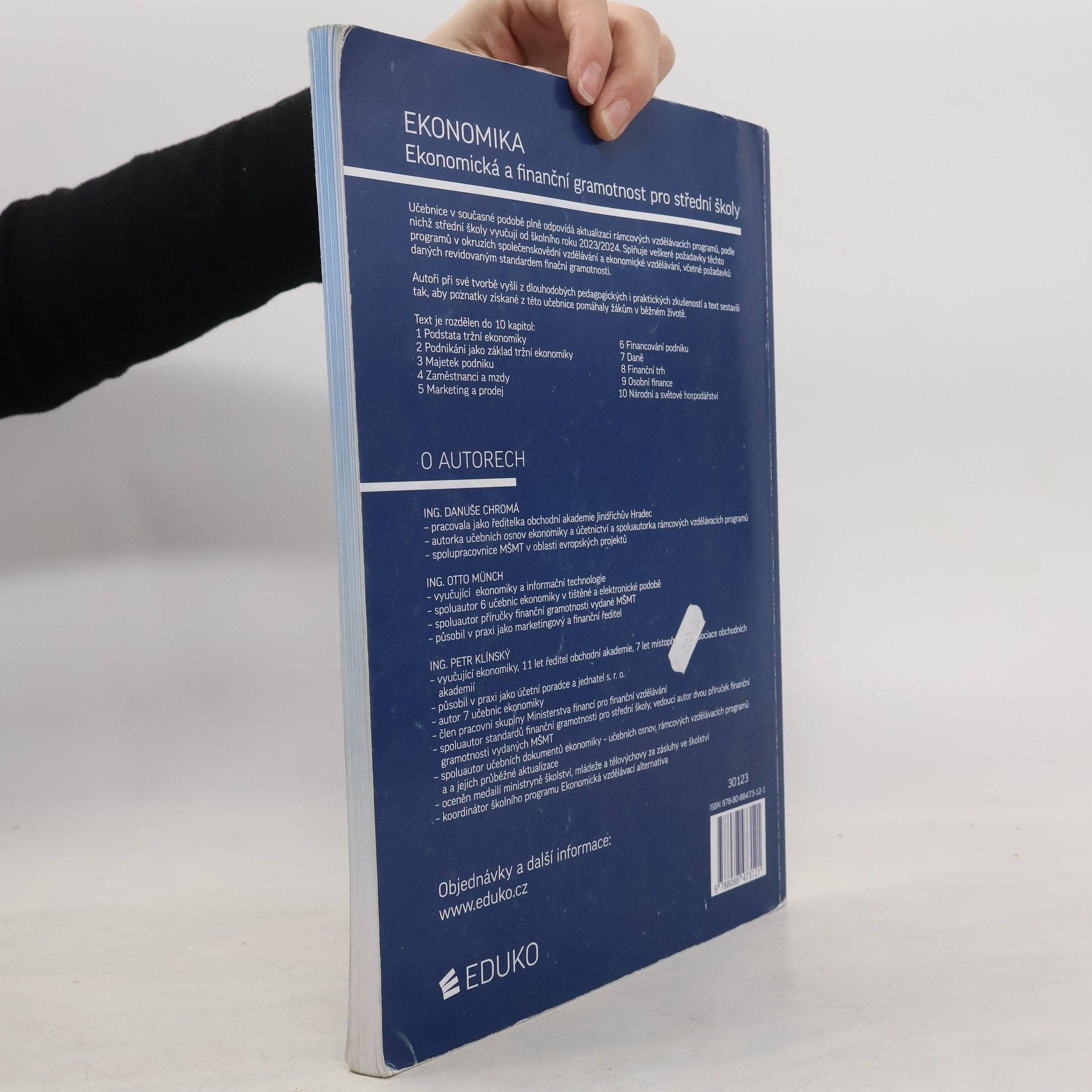 Učebnice shrnuje vše, co požaduje RVP, standard finanční gramotnosti a maturitní katalog Občanského základu v jedné publikaci. Je určena pro střední školy, které nemají ekonomické zaměření - tedy odborné školy a gymnázia. Autoři učebnice jsou také spoluautoři aktuálních vzdělávacích dokumentů, což zaručuje jejich vzájemný soulad. Učebnice je rozdělena do 10 kapitol (1 Podstata tržní ekonomiky, 2 Podnikání jako základ tržní ekonomiky, 3 Majetek podniku, 4 Zaměstnanci a mzdy, 5 Marketing a prodej, 6 Financování podniku, 7 Daně, 8 Finanční trh, 9 Osobní finance, 10 Národní a světové hospodářství ) Publikace je zároveň cvičebnicí (za každou kapitolou jsou zařazeny otázky a úkoly).