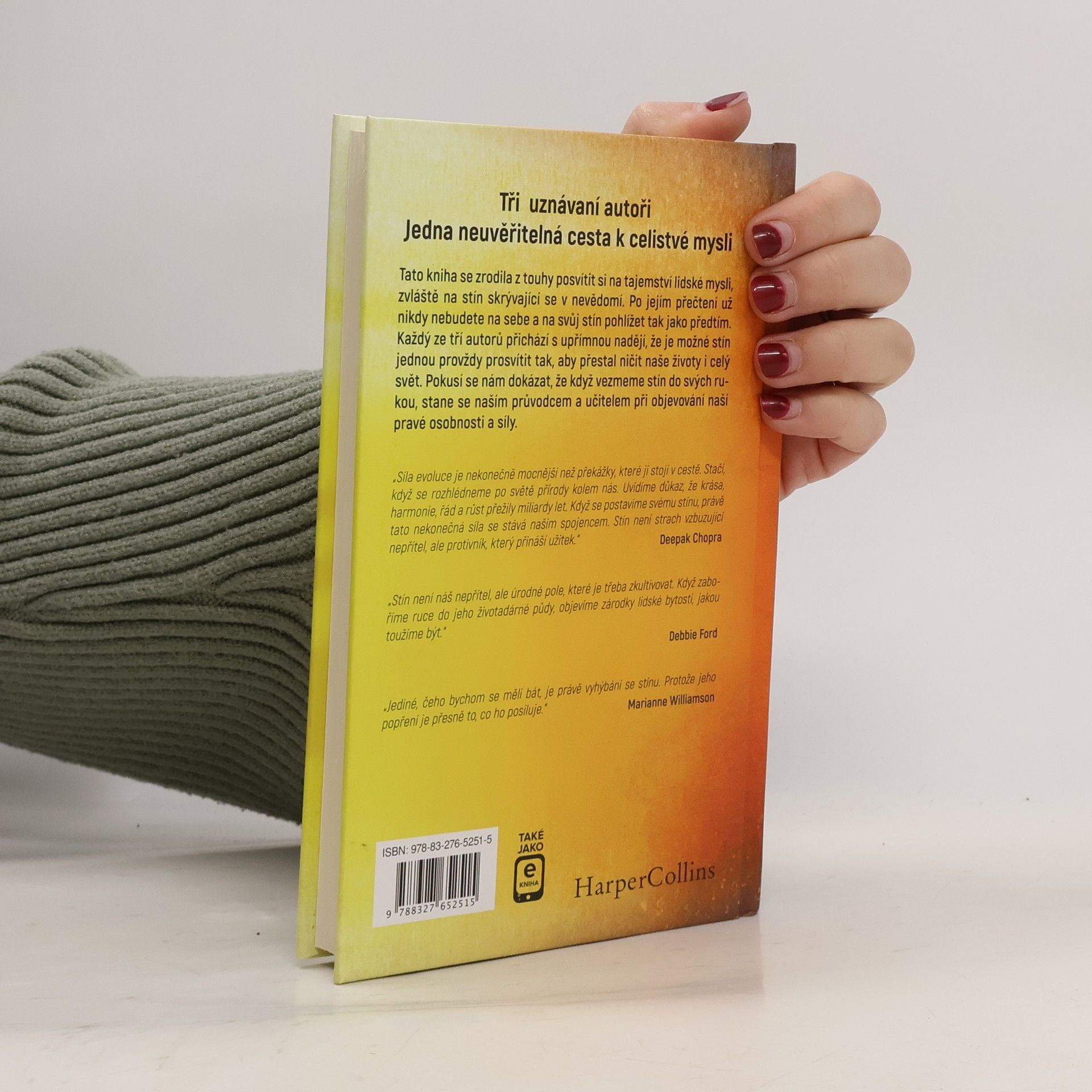 Tato kniha se zrodila z touhy posvítit si na tajemství lidské mysli, zvláště na stín skrývající se v nevědomí. Po jejím přečtení už nikdy nebudete na sebe a na svůj stín pohlížet tak jako předtím. Každý ze tří autorů přichází s upřímnou nadějí, že je možné stín jednou provždy prosvítit tak, aby přestal ničit naše životy i celý svět. Pokusí se nám dokázat, že když vezmeme stín do svých rukou, stane se naším průvodcem a učitelem při objevování naší pravé osobnosti a síly.
