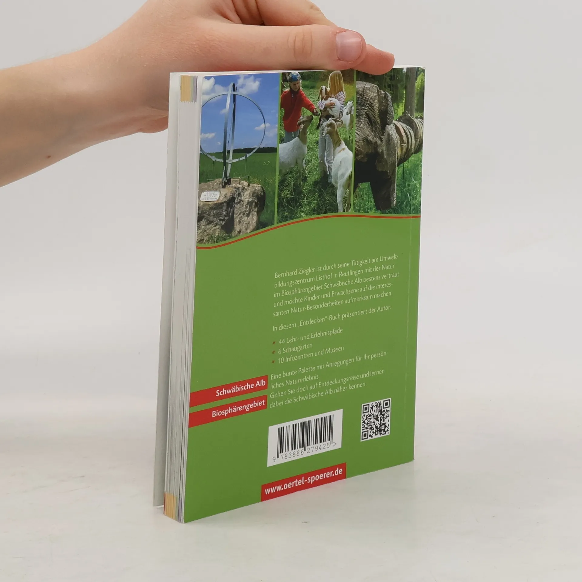 Dieses Entdecken-Buch präsentiert 44 vielfältige Lehr- und Erlebnispfade, 6 Schaugärten und 10 Infozentren und Museen im Biosphärengebiet Schwäbische Alb, die nur darauf warten, erkundet zu werden. Die Natur spielerisch kennenlernen und mit allen Sinnen erfahren: Probieren, wie Streuobst schmeckt, wie sich Wacholder anfühlt, wie Albschnecken aussehen oder herausfinden, wie ein Specht telefoniert und wie sich ein Jungvogel in seinem Nest fühlt. Und über vieles Spannende mehr, informieren auch die 10 Informationszentren des Biosphärengebietes, die der Autor, der selbst am Umweltbildungszentrum Listhof in Reutlingen als Pädagoge arbeitet, in ihren jeweiligen Schwerpunkten vorstellt.