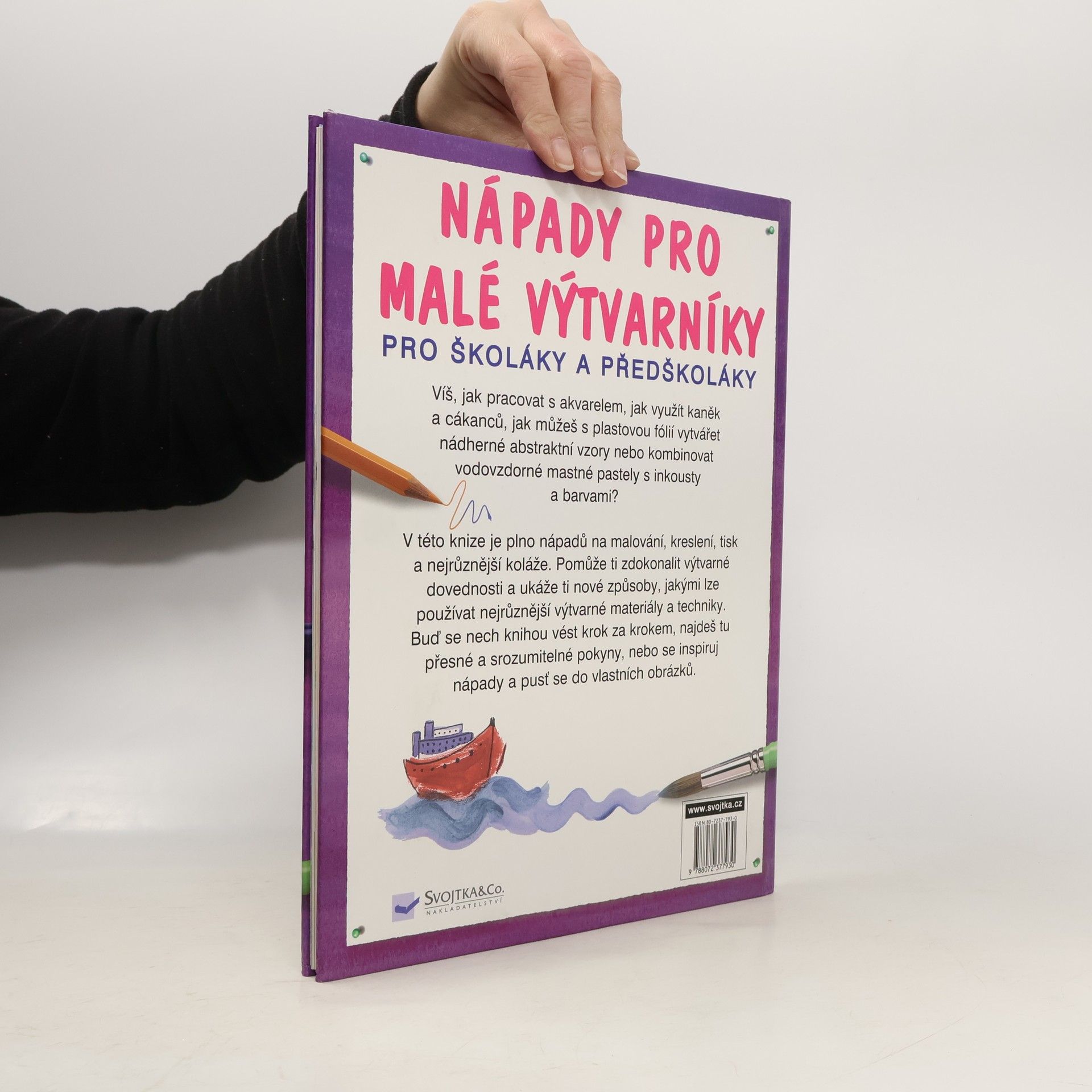 Více než 120 nápadů, jak uplatnit různé výtvarné techniky. Víte, jak pracovat s akvarelem, jak využít kaněk a cákanců, jak můžete s plastovou fólií vytvářet nádherné abstraktní vzory nebo kombinovat vodovzdorné mastné pastely s inkousty a barvami? V této knize je plno nápadů na malování, kreslení, tisk a nejrůznější koláže. Pomůže vám zdokonalit výtvarné dovednosti a ukáže nové způsoby, jakými lze používat nejrůznější výtvarné materiály a techniky. Bud' se nechte knihou vést krok za krokem, najdete tu přesné a srozumitelné pokyny, nebo se inspirujte nápady a pusťte se do vlastních obrázků.