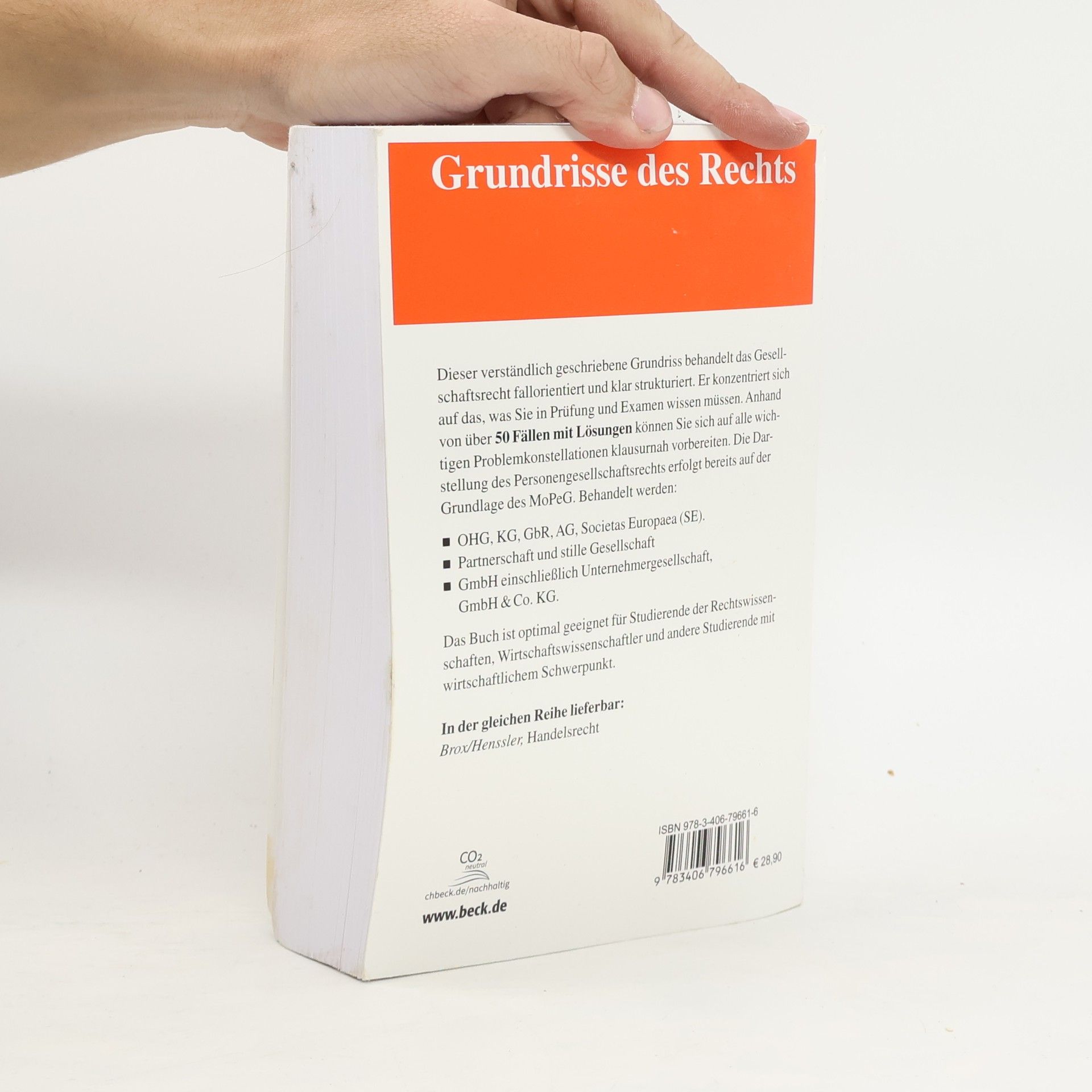 Dieser verständlich geschriebene Grundriss behandelt das Gesellschaftsrecht fallorientiert und klar strukturiert. Er konzentriert sich auf das, was Sie in Prüfung und Examen wissen müssen. Anhand von über 50 Fällen mit Lösungen können Sie sich auf alle wichtigen Problemkonstellationen klausurnah vorbereiten. Die Darstellung des Personengesellschaftsrechts erfolgt bereits auf der Grundlage des MoPeG. Behandelt werden: OHG, KG, GbR, AG, Societas Europaea (SE). Partnerschaft und stille Gesellschaft GmbH einschließlich Unternehmergesellschaft, GmbH & Co. KG. Das Buch ist optimal geeignet für Studierende der Rechtswissenschaften, Wirtschaftswissenschaftler und andere Studierende mit wirtschaftlichem Schwerpunkt. In der gleichen Reihe lieferbar: Brox/Henssler, Handelsrecht