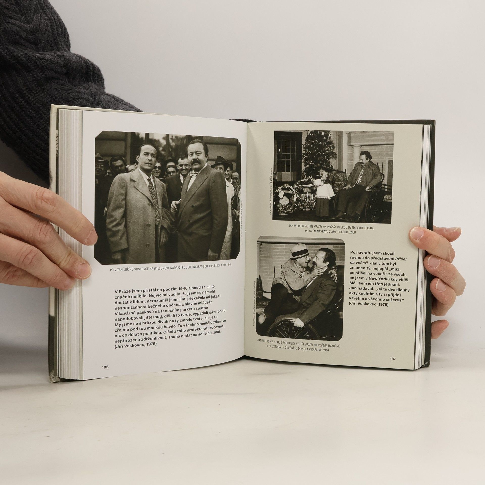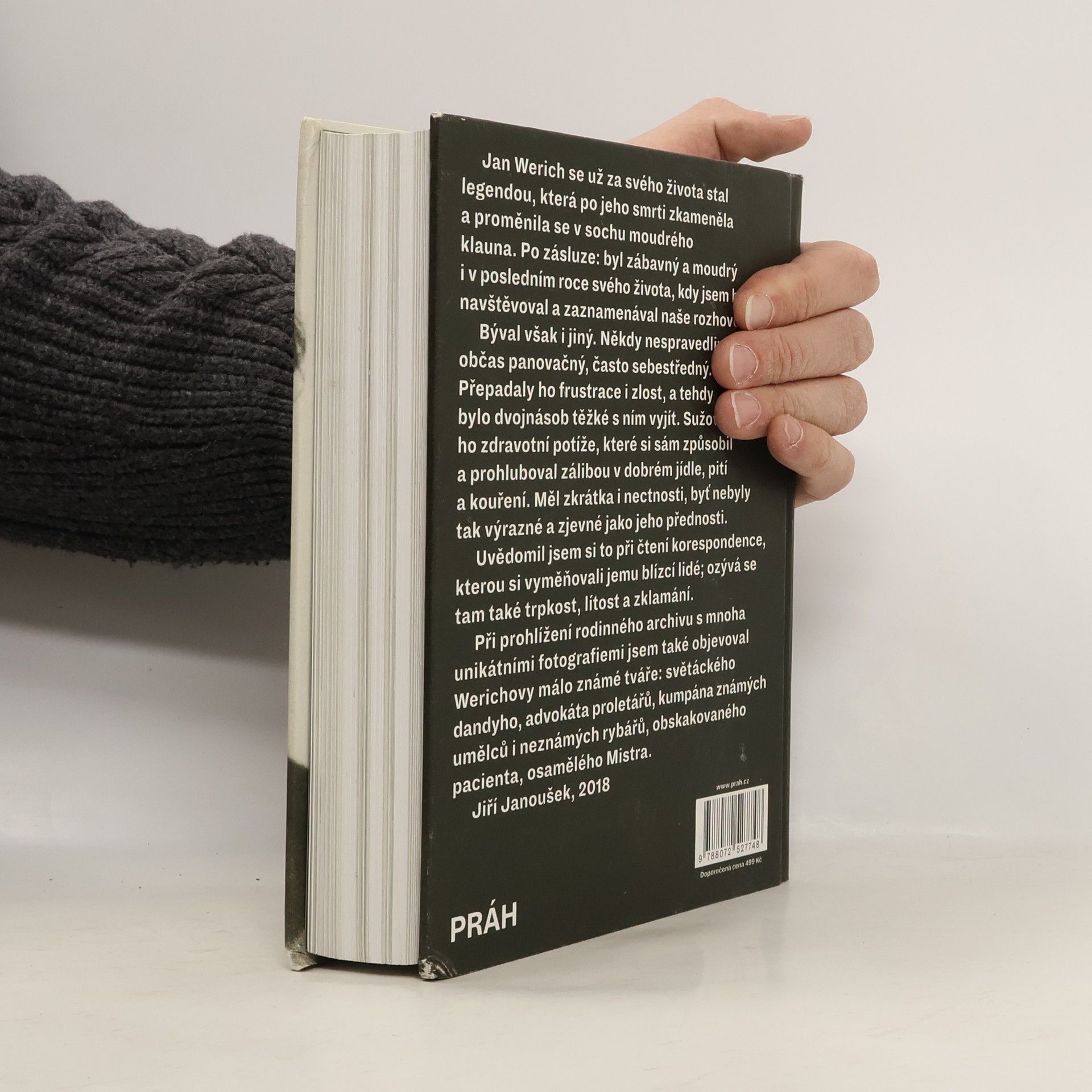 Kniha Jan Werich za oponou přináší na tři stovky unikátních fotografií z rodinného archivu. Mapují jeho život od narození až do smrti a objevují Werichovy málo známé tváře – světáckého dandyho, geniálního komika, advokáta proletářů, kumpána známých umělců i neznámých rybářů, obskakovaného pacienta i osamělého Mistra. Mluví se v ní také o Werichových nectnostem. Že někdy býval nespravedlivý, panovačný a sebestředný. Přepadaly ho frustrace i zlost, když se z populární herecké hvězdy stal nepohodlnou osobností, kterou bývalý režim odsunul do ústraní. Sužovaly ho zdravotní potíže. Nejenže si je sám způsobil, ale prohluboval je zálibou v dobrém jídle, pití a kouření. Spojení jedinečných fotografií a dvanácti obsažných rozhovorů Jiřího Janouška, v nichž se Jan Werich nedlouho před smrtí ohlížel za svým životem, doplňují dobová svědectví a komentáře lidí, kteří mu byli nablízku, zejména Jiřího Voskovce, Miroslava Horníčka a Miloše Kopeckého, ale také lékařů, kteří ho ošetřovali nebo spoluhráčů mariáše. Kniha Jan Werich za oponou přináší plastický portrét Jana Wericha a jeho soukromí, které nebylo právě šťastné a zůstávalo skryté za legendou moudrého klauna.