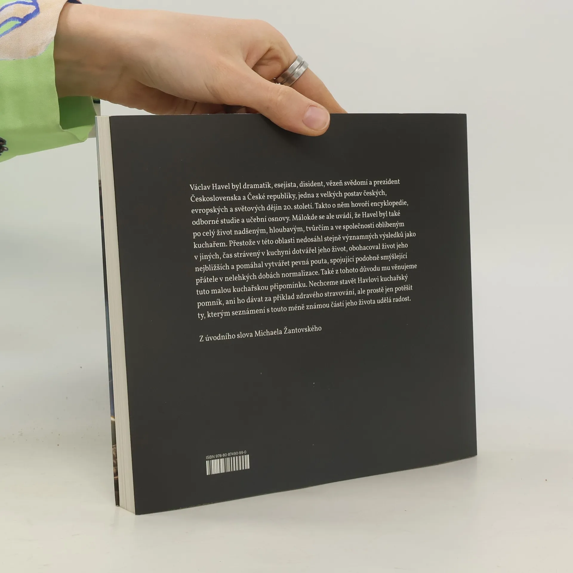 Kniha receptů spjatých s Václavem Havlem – ať už v roli spokojeného strávníka či po všech stránkách svébytného kuchaře. Václav Havel byl dramatik, esejista, disident, vězeň svědomí a prezident Československa a České republiky, jedna z velkých postav českých, evropských a světových dějin 20. století. Takto o něm hovoří encyklopedie, odborné studie a učební osnovy. Málokde se ale uvádí, že Havel byl také po celý život nadšeným, hloubavým, tvůrčím a ve společnosti oblíbeným kuchařem. Přestože v této oblasti nedosáhl stejně významných výsledků jako v jiných, čas strávený v kuchyni dotvářel jeho život, obohacoval život jeho nejbližších a pomáhal vytvářet pevná pouta, spojující podobně smýšlející přátele v nelehkých dobách normalizace. Také z tohoto důvodu mu věnujeme tuto malou kuchařskou připomínku. Nechceme stavět Havlovi kuchařský pomník, ani ho dávat za příklad zdravého stravování, ale prostě jen potěšit ty, kterým seznámení s touto méně známou částí jeho života udělá radost. Veškerý výtěžek z prodeje této knihy (včetně autorských honorářů) bude použit na rozvoj aktivit Knihovny VH