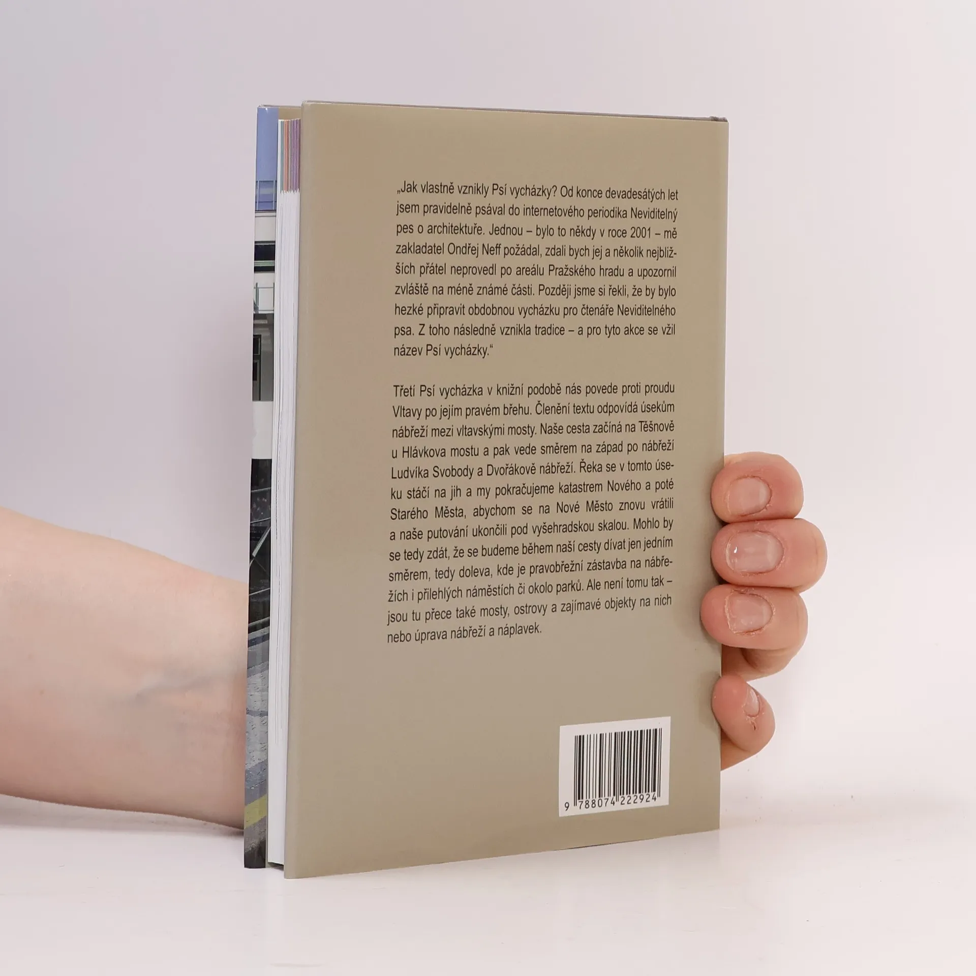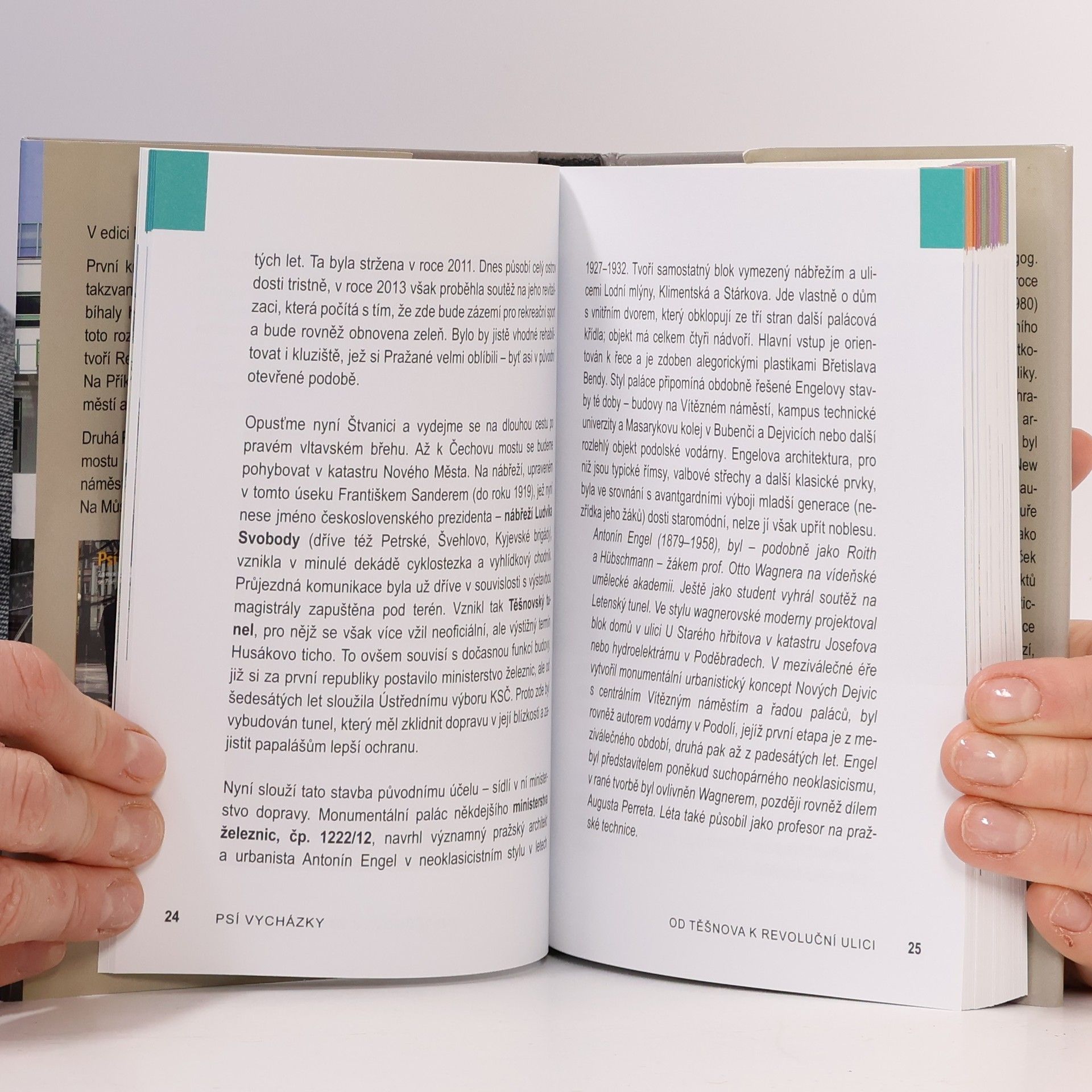Kniha nás povede proti proudu Vltavy po jejím pravém břehu. Členění textu odpovídá úsekům nábřeží mezi vltavskými mosty. Naše cesta začíná na Těšnově u Hlávkova mostu a pak vede směrem na západ po nábřeží Ludvíka Svobody a Dvořákově nábřeží. Řeka se v tomto úseku stáčí na jih a my pokračujeme katastrem Nového a poté Starého Města, abychom se na Nové Město znovu vrátili a naše putování ukončili pod vyšehradskou skalou. Mohlo by se zdát, že se budeme během naší cesty dívat jen jedním směrem, tedy doleva, kde je pravobřežní zástavba na nábřežích a přilehlých náměstích či okolo parků. Ale není tomu tak - jsou tu přece také mosty, ostrovy a zajímavé objekty na nich nebo úprava nábřeží a náplavek.