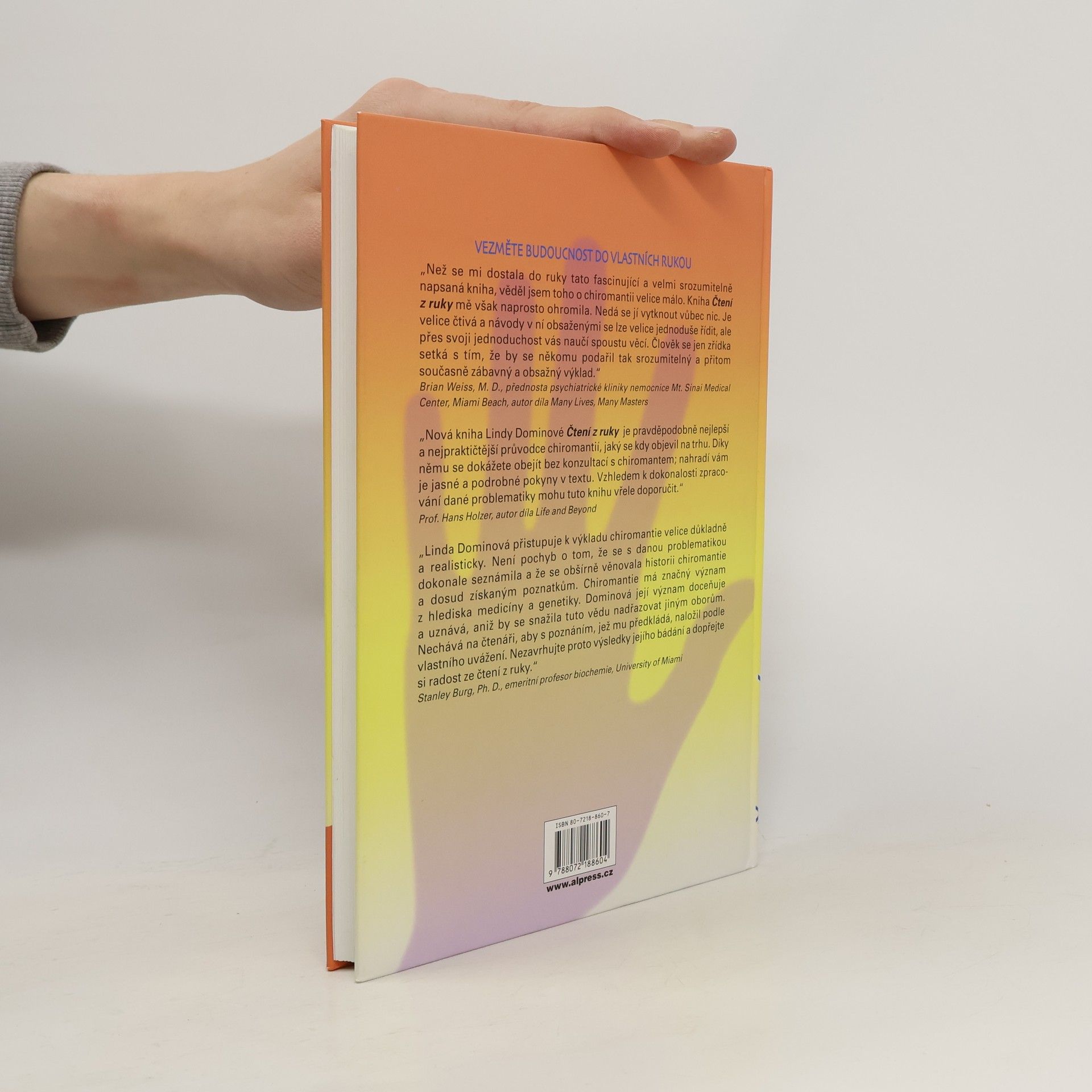 V této knize se čtenář dozví o principech, jimiž jsou do lidské dlaně zakódovány informace o našem těle, mysli i povaze, tedy i o naší nejniternější bytosti, již si žárlivě střežímě před okolím. Své charakterové rysy, schopnosti a vrozene nadání máme vštípeny do mysli, z níž jsou tyto znaky jako obrazy přenášeny do dlaně. V ní tak nosíme svoji minulost,přítomnost i budoucnost.