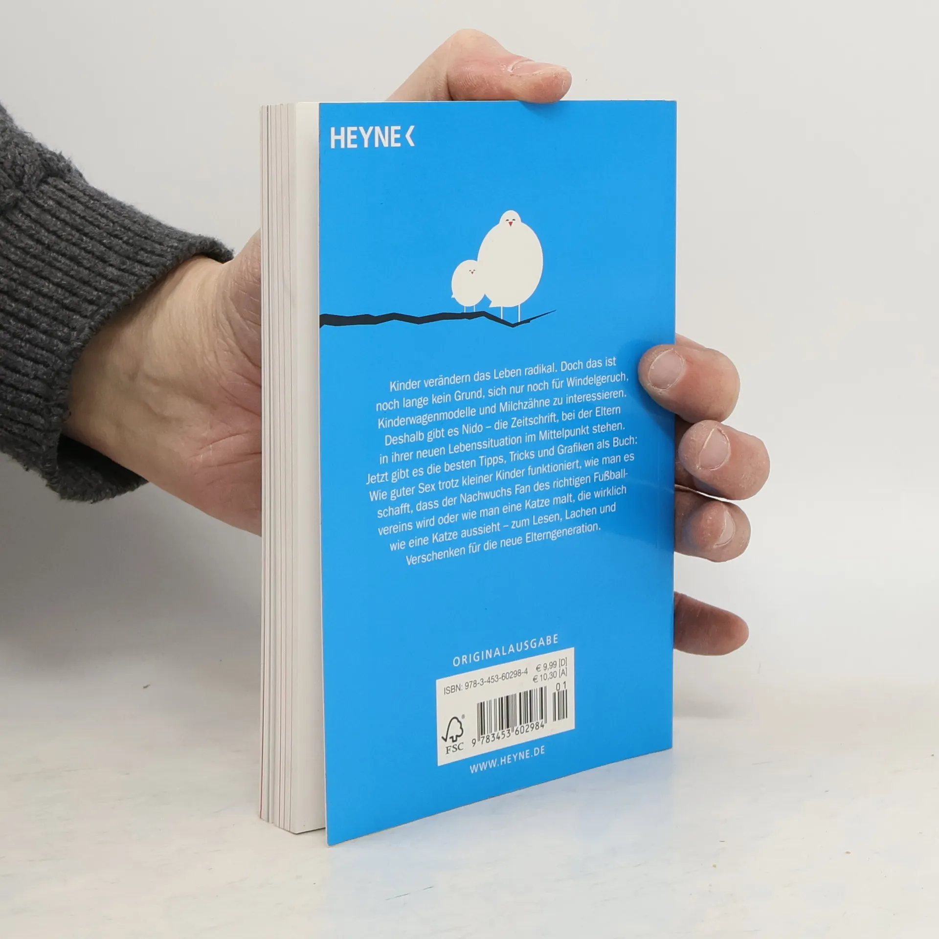 Überraschendes, Lustiges und Lästiges zum Thema Kinder. Entspanntes Leben mit Kindern: Das Magazin der Stunde heißt NIDO, 2010 mit großem Erfolg von den NEON-Machern eingeführt. Hier stehen Eltern in ihrer neuen Lebenssituation im Mittelpunkt – die ideale Alternative für NEON-Leser, die ein Kind bekommen haben. Jetzt gibt es die besten Tipps, Tricks und Grafiken als Buch: Wie guter Sex trotz kleiner Kinder funktioniert, wie man es schafft, dass der Nachwuchs Fan des richtigen Fußballvereins wird, oder wie man eine Katze malt, die wirklich wie eine Katze aussieht – zum Schmökern, Schmunzeln oder Schenken für die neue Elterngeneration.